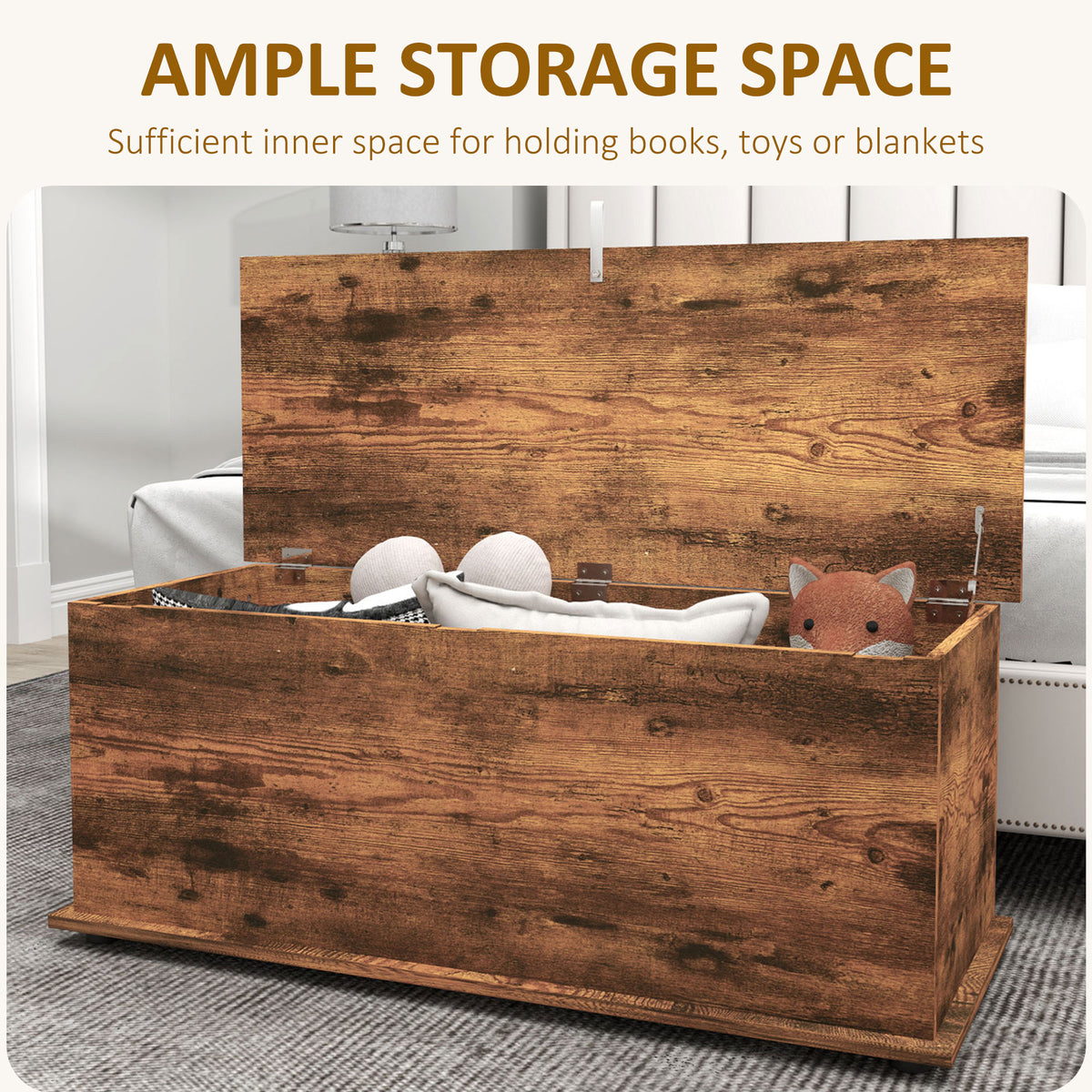 HOMCOM 113L Storage Chest, Storage Box with Flip-Top Lid and 2 Safety Hinges, Storage Trunk for Living Room, Entryway, 100 x 40 x 40 cm, Rustic Brown - Rustic Brown