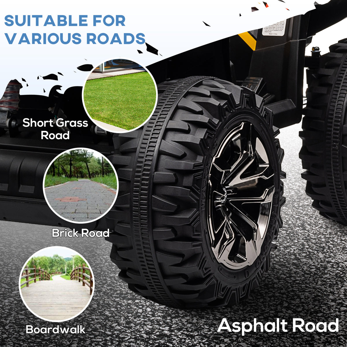 Wonderful adventures await with this HOMCOM electric four-wheel ride-on. Suitable for ages 3-5, its wide, textured wheels ensure a smooth and safe ride. More than just a ride-on, it includes USB, MP3 and TF card options for their favourite songs and working headlights add to the experience. Charge the battery for 8-12 hours for 45 minutes of pure riding excitement, taking fun to new heights.