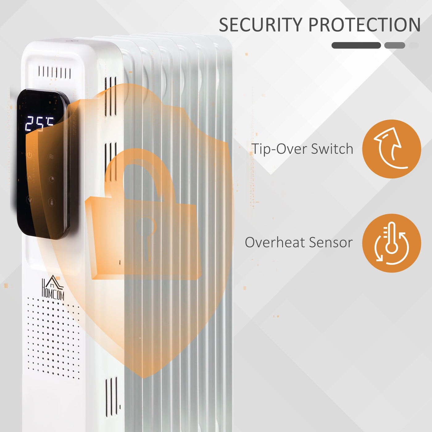 HOMCOM 1500W Oil Filled Radiator, 7 Fin Portable Electric Heater with LED Display, 24H Timer, 3 Heat Settings, Adjustable Thermostat, Safety Cut off, Remote Control, White - White