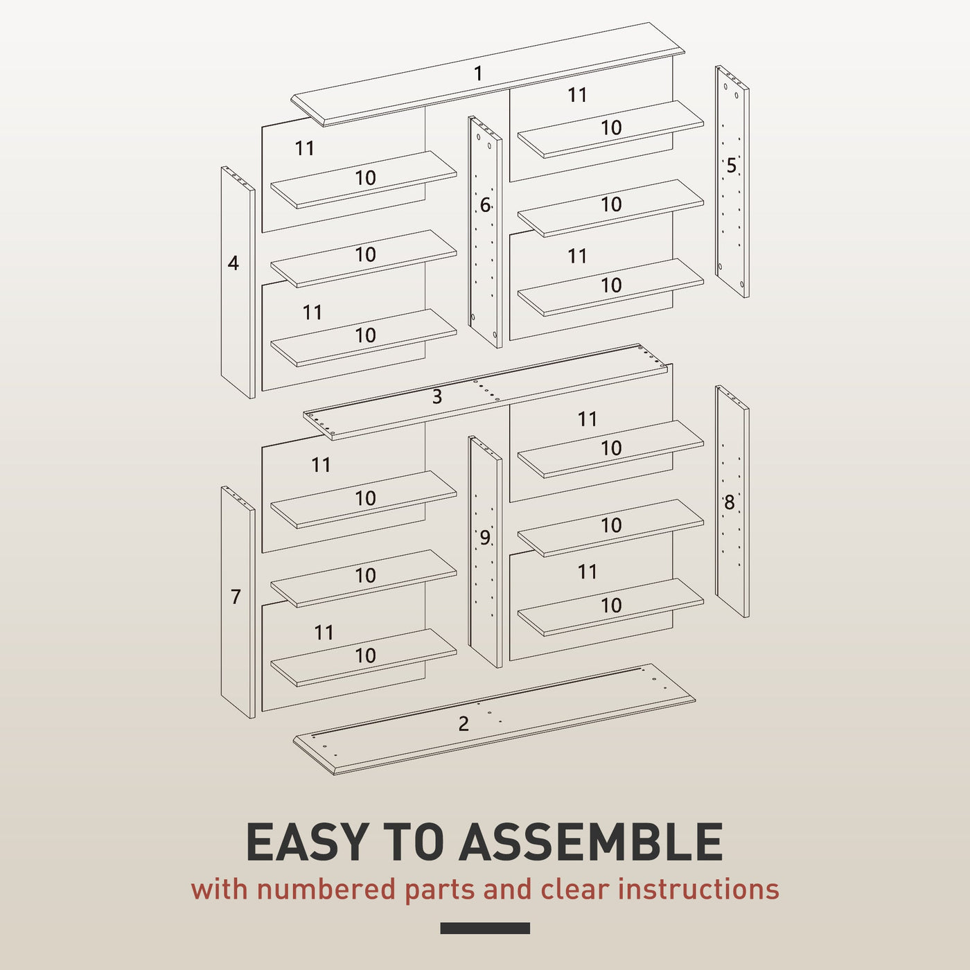 HOMCOM 16-Compartment Media Shelf - Nature Wood Finish