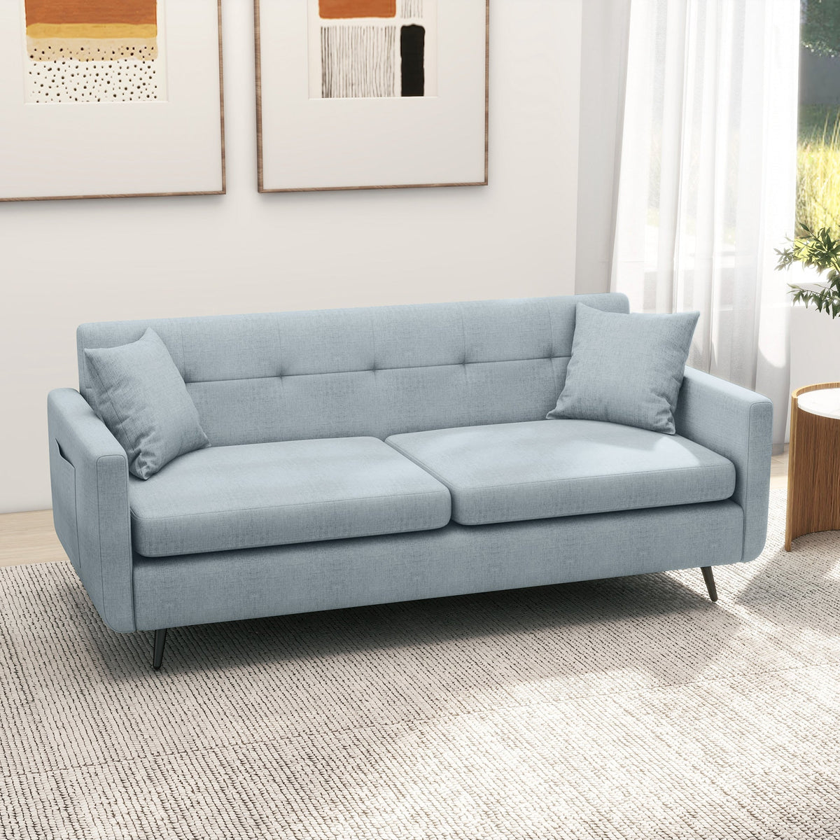 HOMCOM 165cm 3 Seater Sofa for Living Room, Modern Fabric Couch, Tufted Small Couch Sofa Settee with Steel Legs and 2 Storage Pockets for Bedroom and Home Office, Blue - Blue