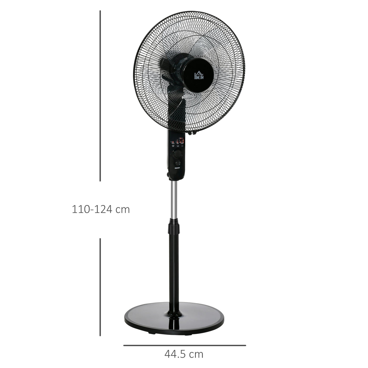 HOMCOM 18" Pedestal Fan, Oscillating Standing Fan with Remote Control, Floor Fan with Adjustable Height, 3 Speed, 7.5-Hour Timer, Black - Black