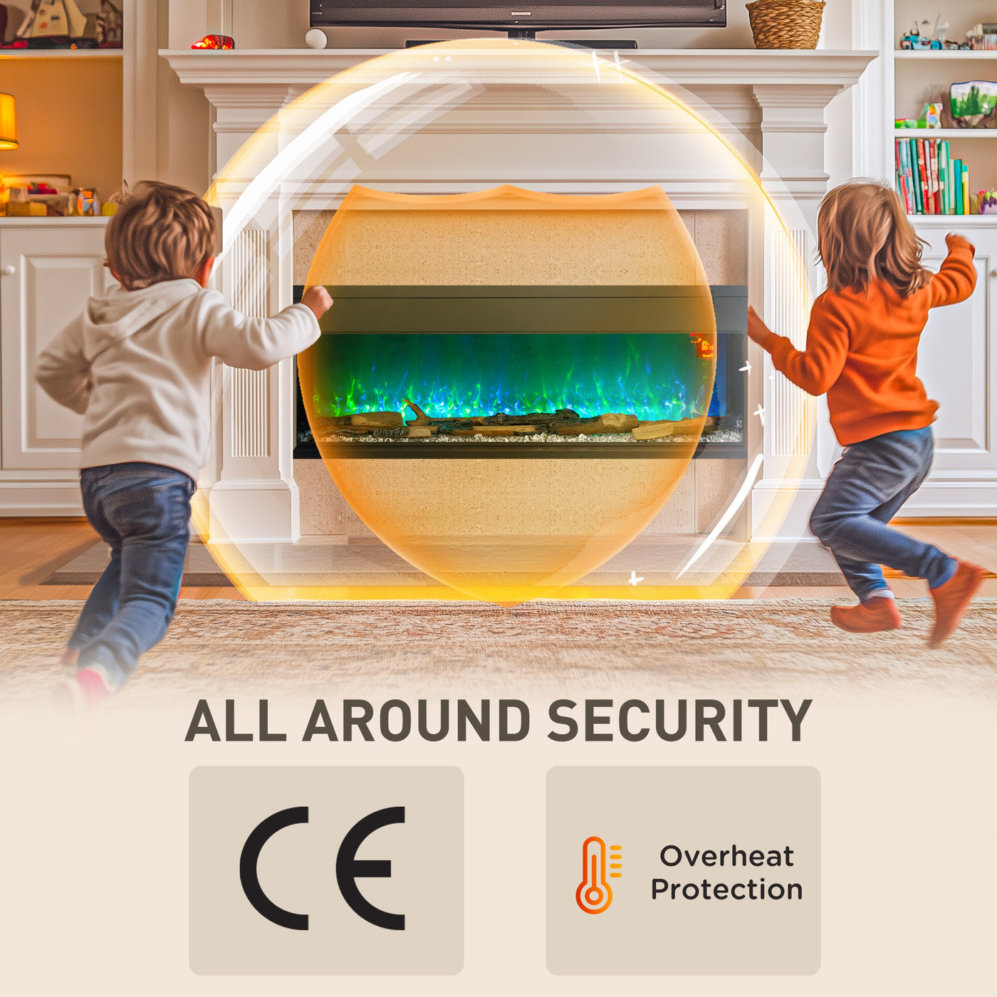 HOMCOM 1800W 15-40℃ Adjustable Flame Glass Panel Convector Heater, 127cm