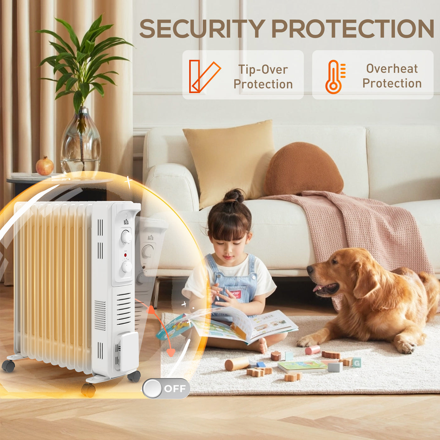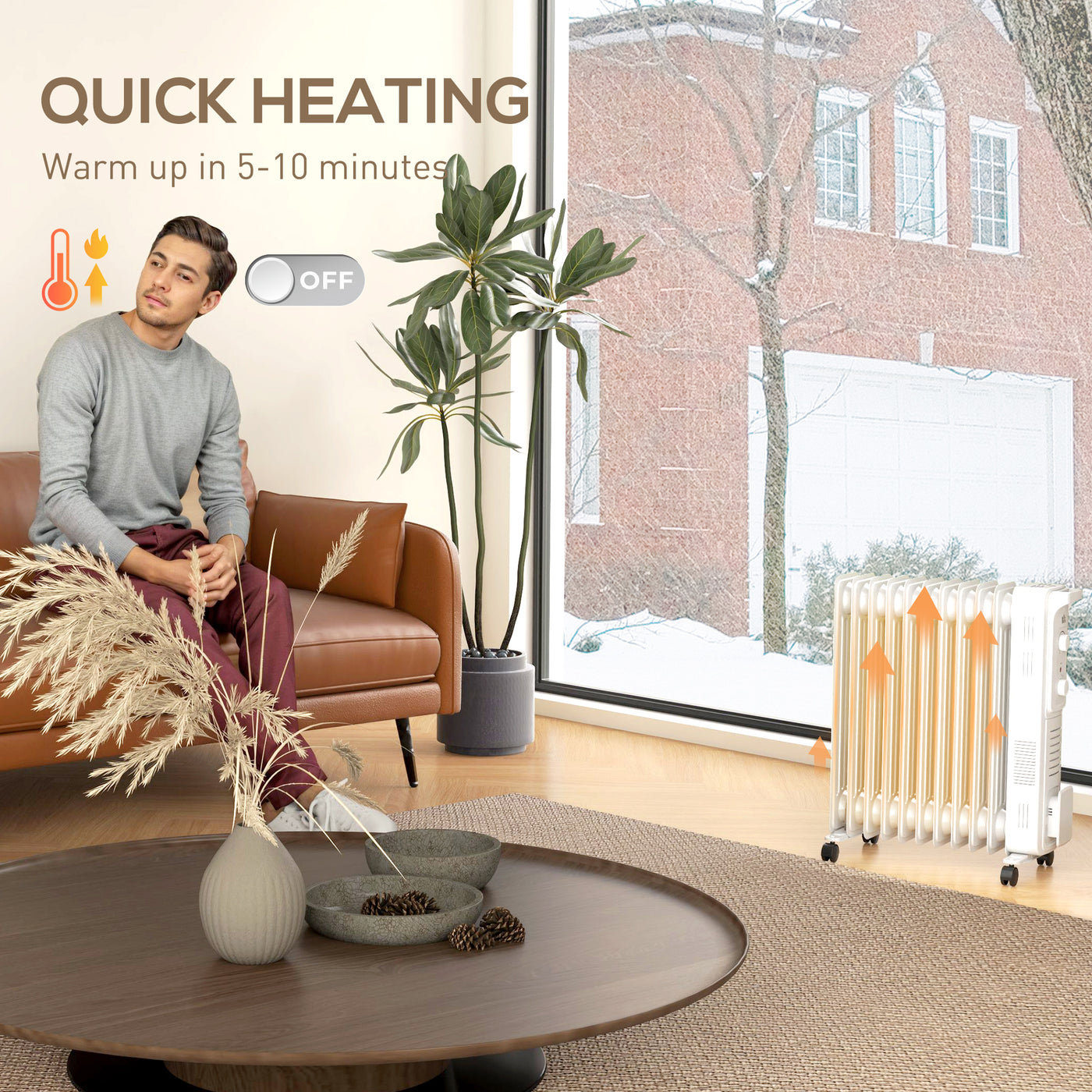 For fast, quiet and powerful heating, look to this HOMCOM oil-filled radiator. The 11-fin design provides plenty of heat, for 10-20㎡ sized spaces - keeping you warm and cosy. Thanks to the oil filling, this radiator heats up in 5-10 minutes - you won't have to wait long to heat up. Flick between 1000W/1500W/2500W, and set the temperature between 7-35℃: this portable radiator heater is a piece which customises to exactly how you want.