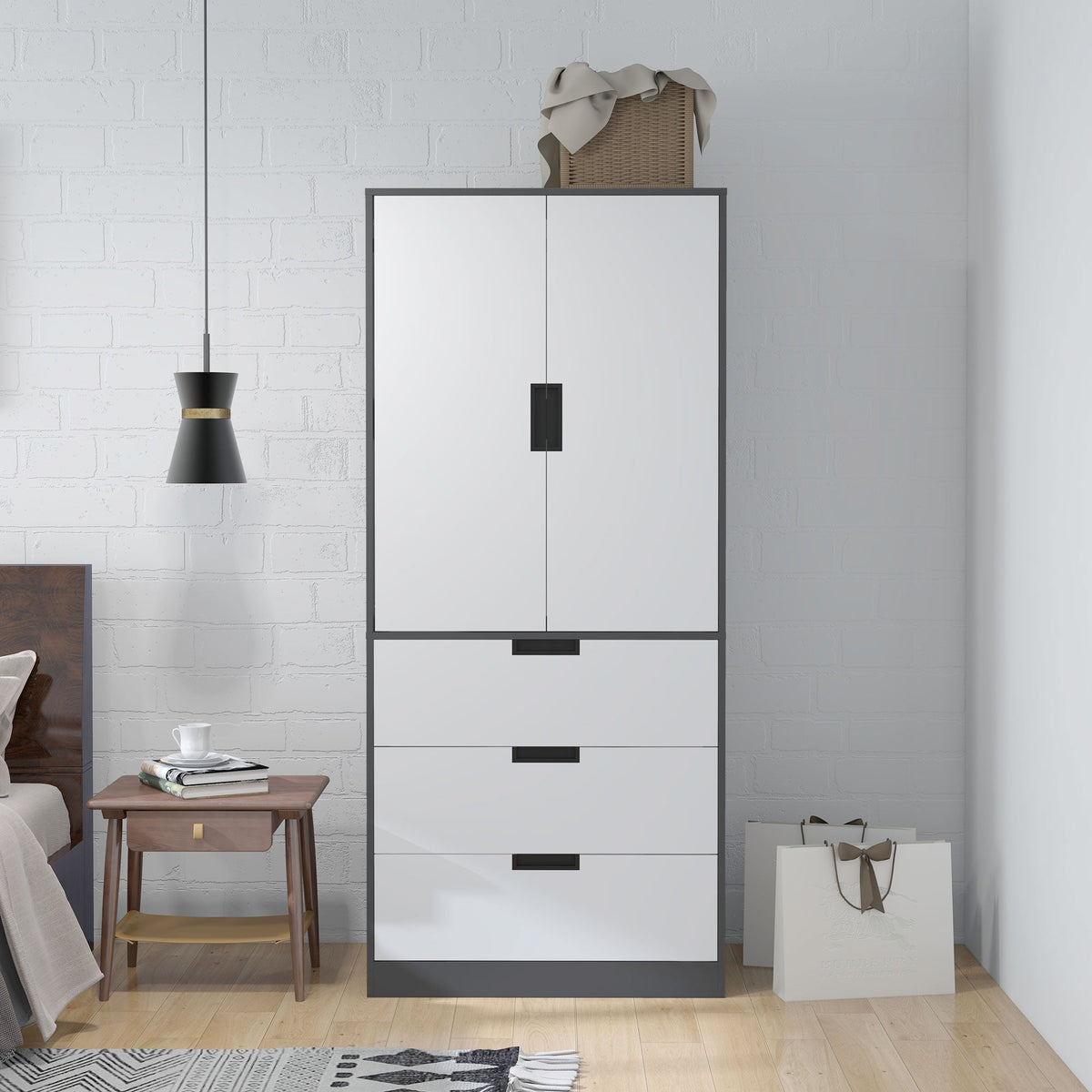 Not just a wardrobe with drawers, this HOMCOM grey and white wardrobe with drawers adds a dash of character with its grey accents. The double size offers plenty of room for hanging clothes, with three drawers for folded garments. Made from particle board, it is strong and solid - great for everyday use.