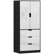 Not just a wardrobe with drawers, this HOMCOM black and high gloss white wardrobe with drawers adds a dash of character with its black accents. The double size offers plenty of room for hanging clothes, with three drawers for folded garments. Made from particle board, it is strong and solid - great for everyday use.