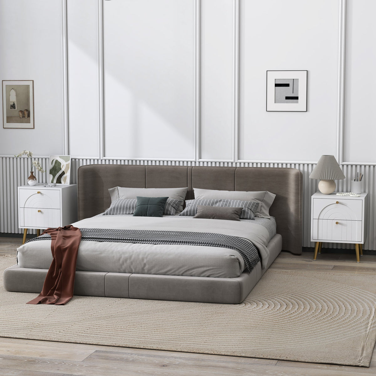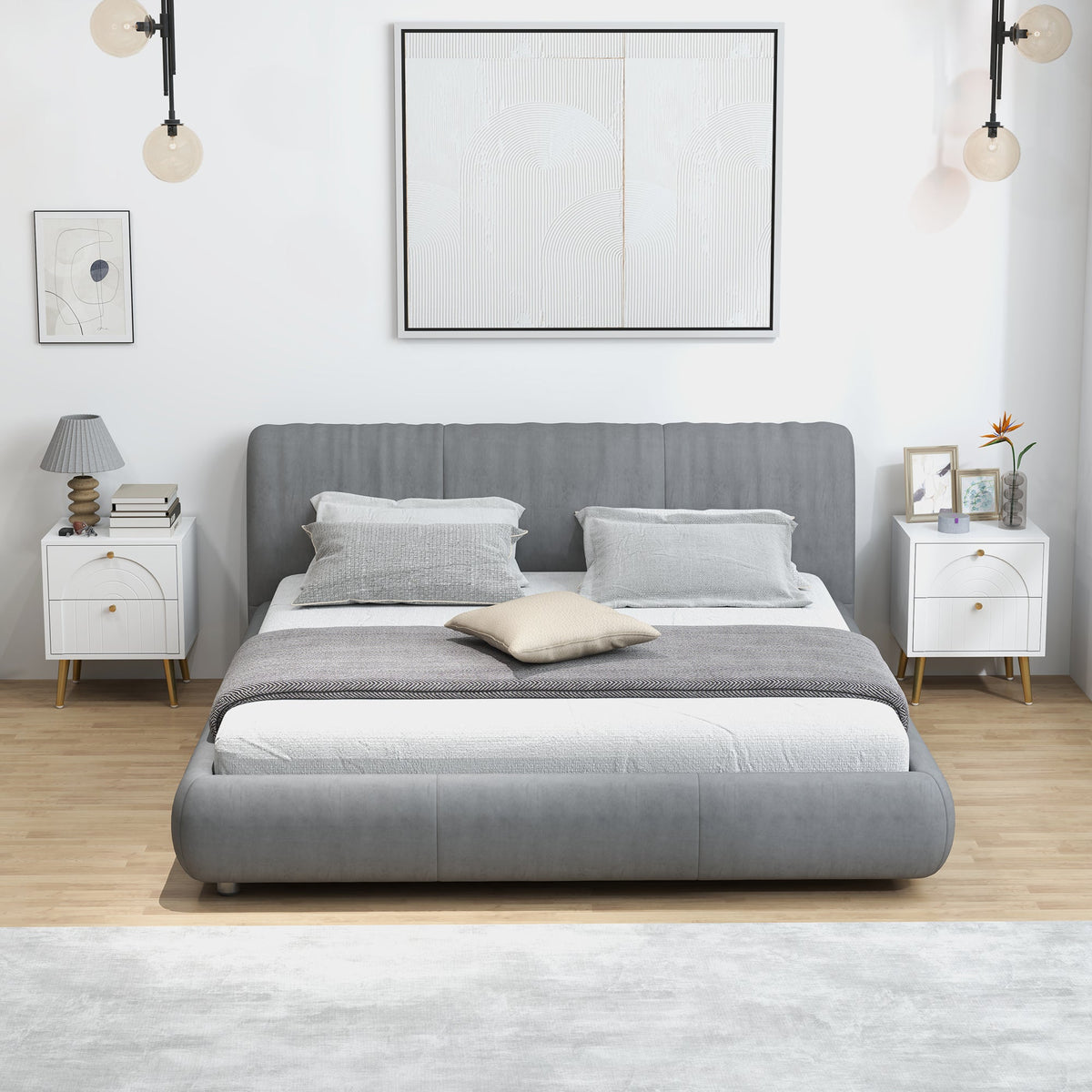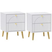 Transform your bedroom with the HOMCOM nightstand, a charming duo that doubles as stylish side tables. Each white bedside table features two spacious drawers adorned with an arched embossed pattern, complemented by gold-tone pulls and legs. The flat tabletops offer additional space for your night-time essentials, making these small bedside tables as functional as they are elegant.