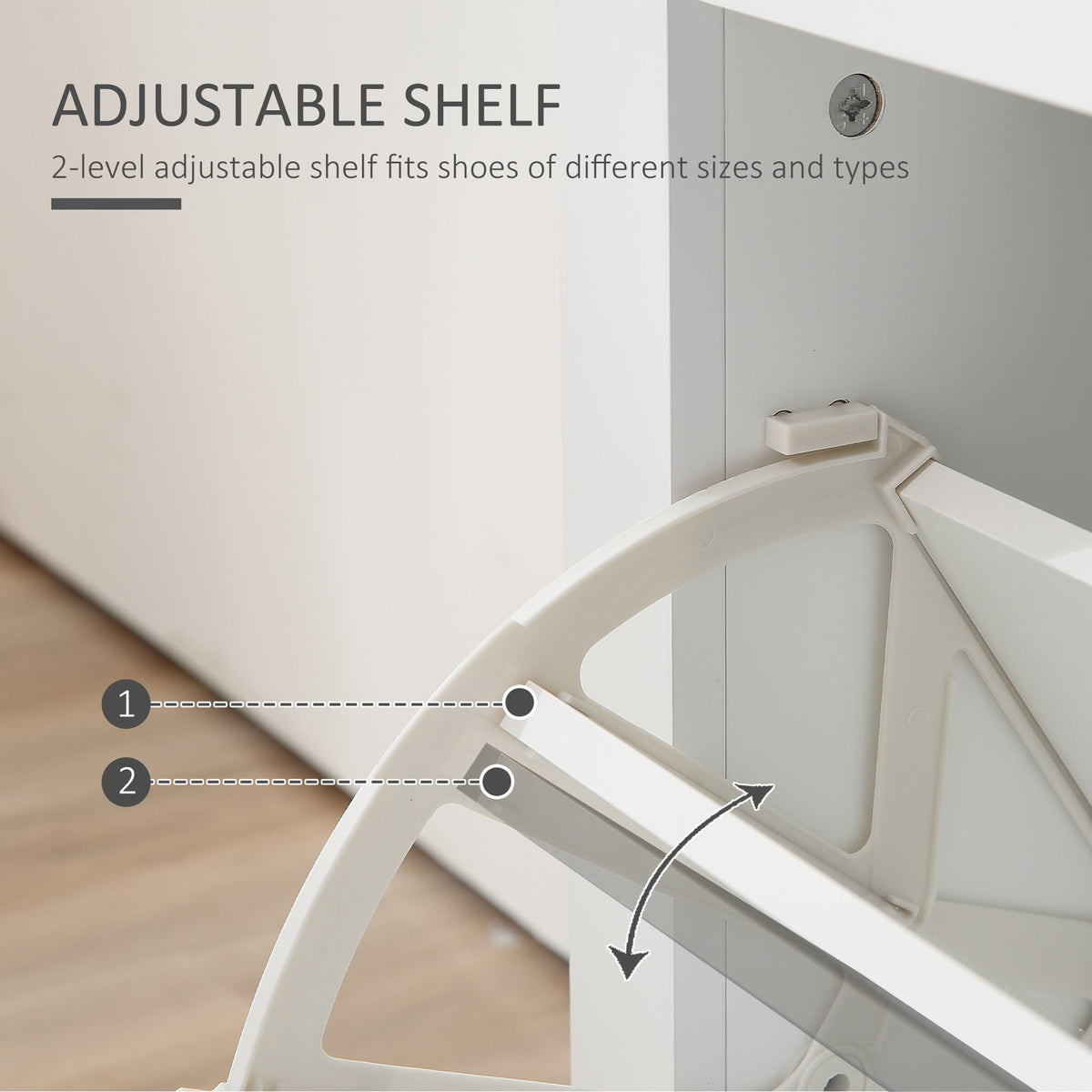 HOMCOM 2 Drawer Shoe Cabinet Modern Narrow Shoe Cupboard Hallway Wooden Storage Organiser with Flip Doors Adjustable Shelf for 6-12 Pairs, White - White