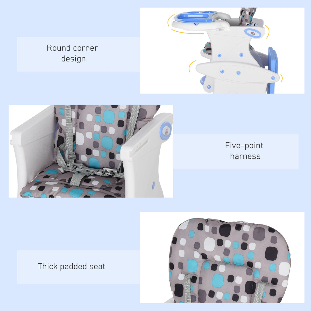 HOMCOM 2 in 1 Convertible Baby High Chair Toddler Table Chair Infant Feeding Seat Removable Food Tray Safety Harness Blue - Blue