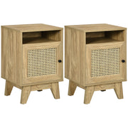 HOMCOM 2-Piece Narrow Rattan Nightstands, Side End Table with Shelf and Cupboard, 39cm x 35cm x 60cm, Natural - Natural wood finish