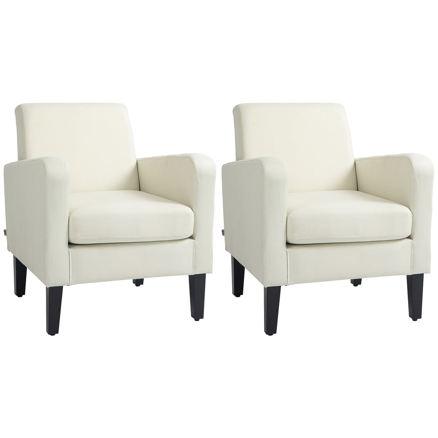 HOMCOM 2 Pieces Modern Armchairs with Rubber Wood Legs, Upholstered Accent Chairs, Single Sofa for Living Room, Bedroom, Cream White
