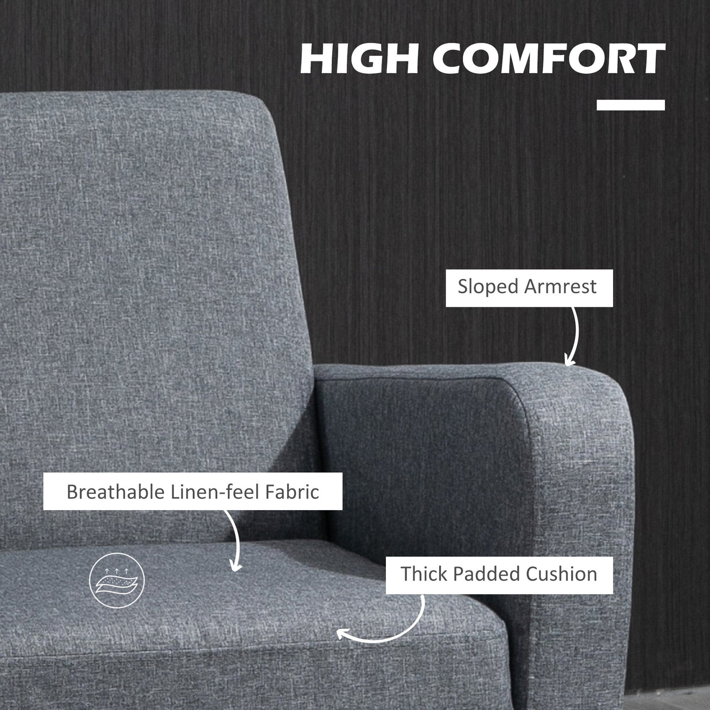 HOMCOM 2 Pieces Modern Armchairs with Rubber Wood Legs, Upholstered Accent Chairs, Single Sofa for Living Room, Bedroom, Grey