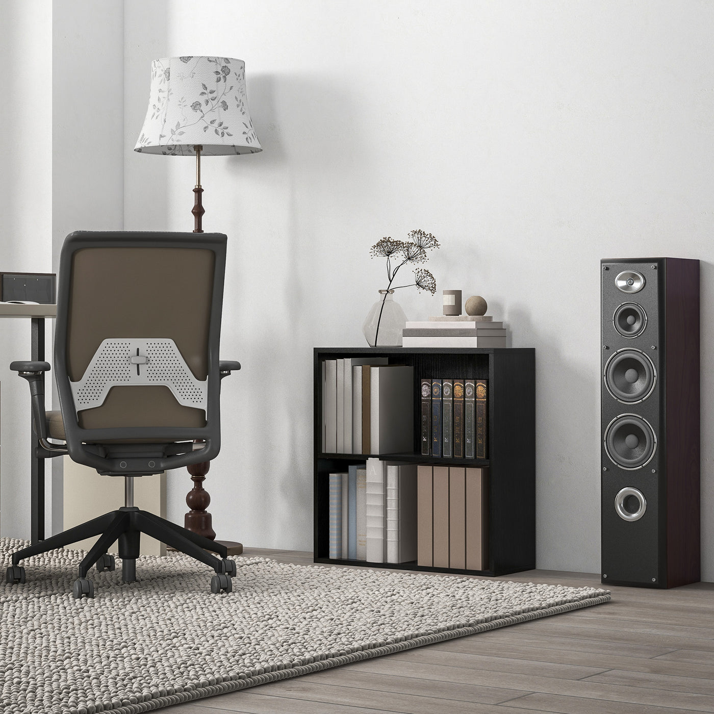 HOMCOM 2 Tier Bookshelf, Low Bookcase with Adjustable Shelf, 2 Compartments for Home Office, Living Room, Study, Black - Black