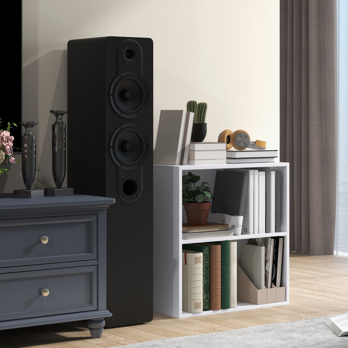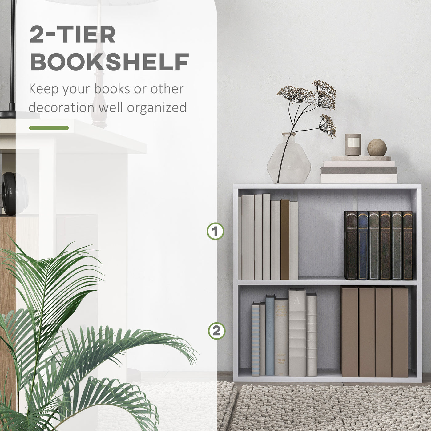 HOMCOM 2 Tier Bookshelf, Low Bookcase with Adjustable Shelf, 2 Compartments for Home Office, Living Room, Study, White - White