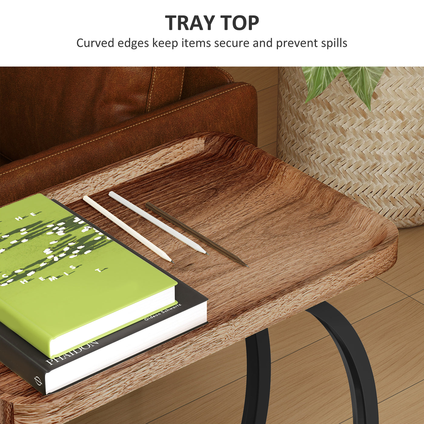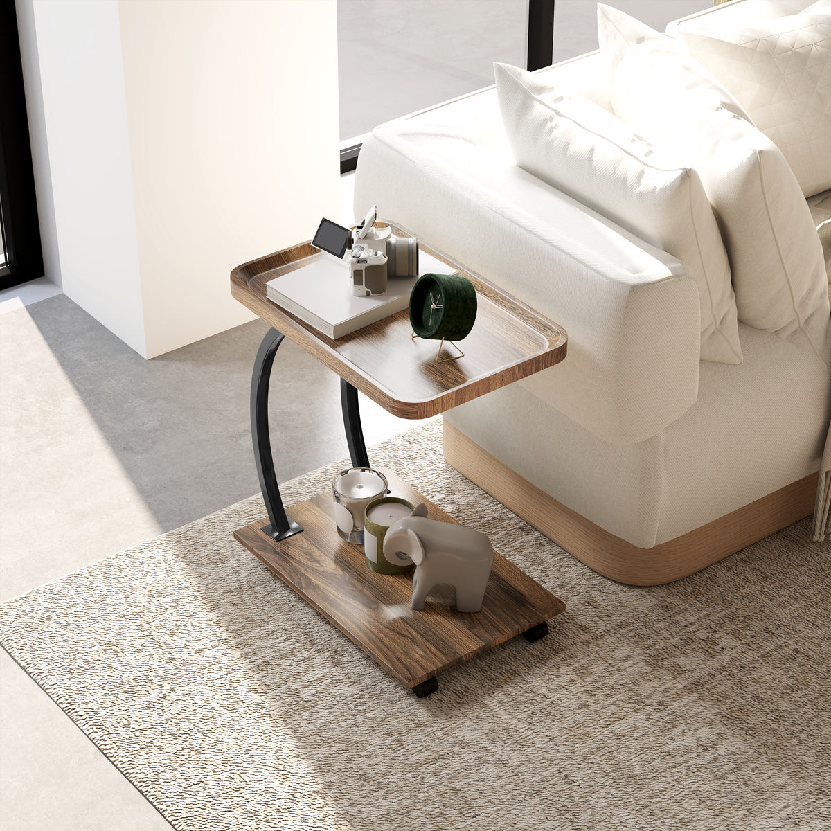 Discover the versatility of the HOMCOM side table, a charming addition to any room. Its C-shaped design slides easily under your sofa or bed, making it an optimal small coffee table or sofa side table. Enjoy clutter-free convenience with two-tier storage and a tray top with curved edges to keep items secure. Plus, manoeuvre this end table effortlessly with four wheels, two equipped with brakes.