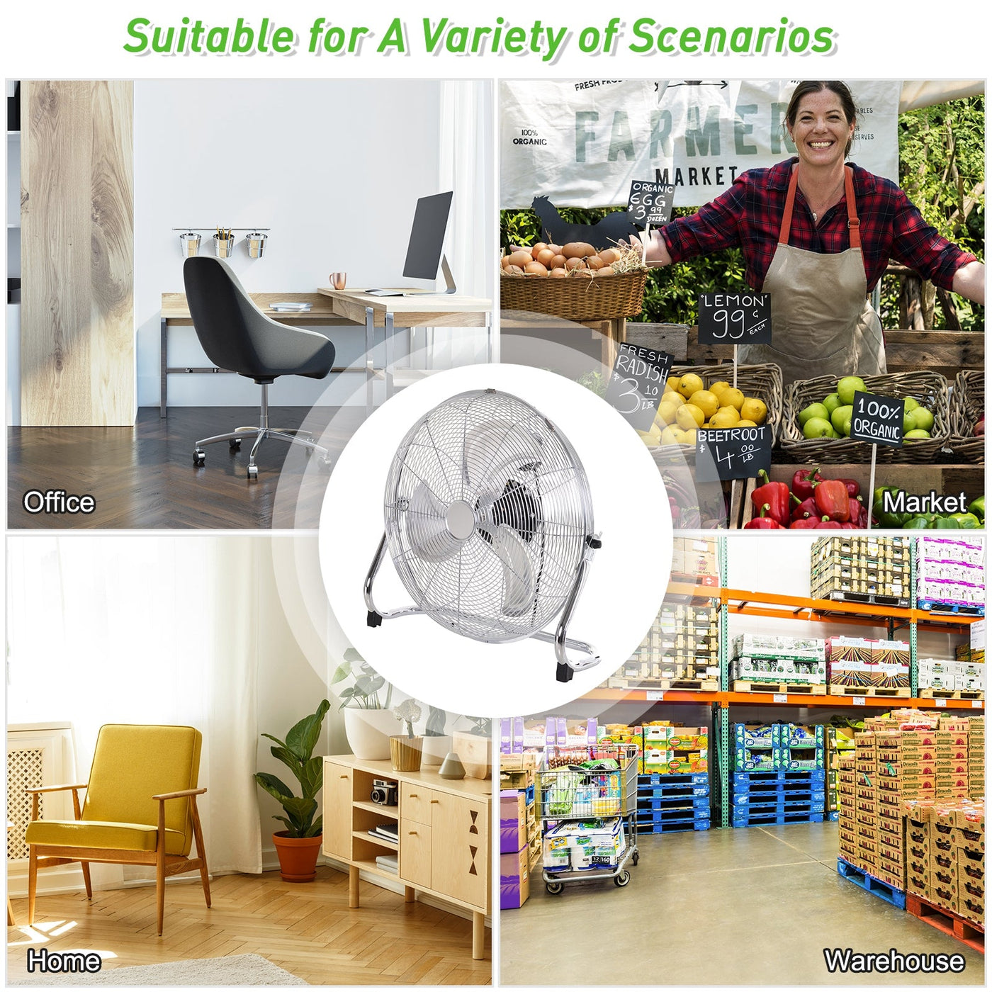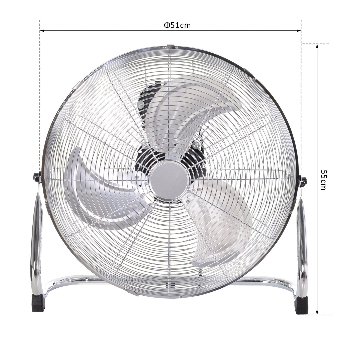 HOMCOM 20" Chrome Metal Floor Fan with Tilting, High Velocity, 3 Speed, Portable Gym Fan for Home Office, Silver - Silver