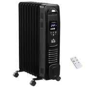 HOMCOM 2000W Digital Oil Filled Radiator, 9 Fin, Portable Electric Heater with LED Display, Timer, 3 Heat Settings, Safety Cut-Off and Remote Control, Black - Black