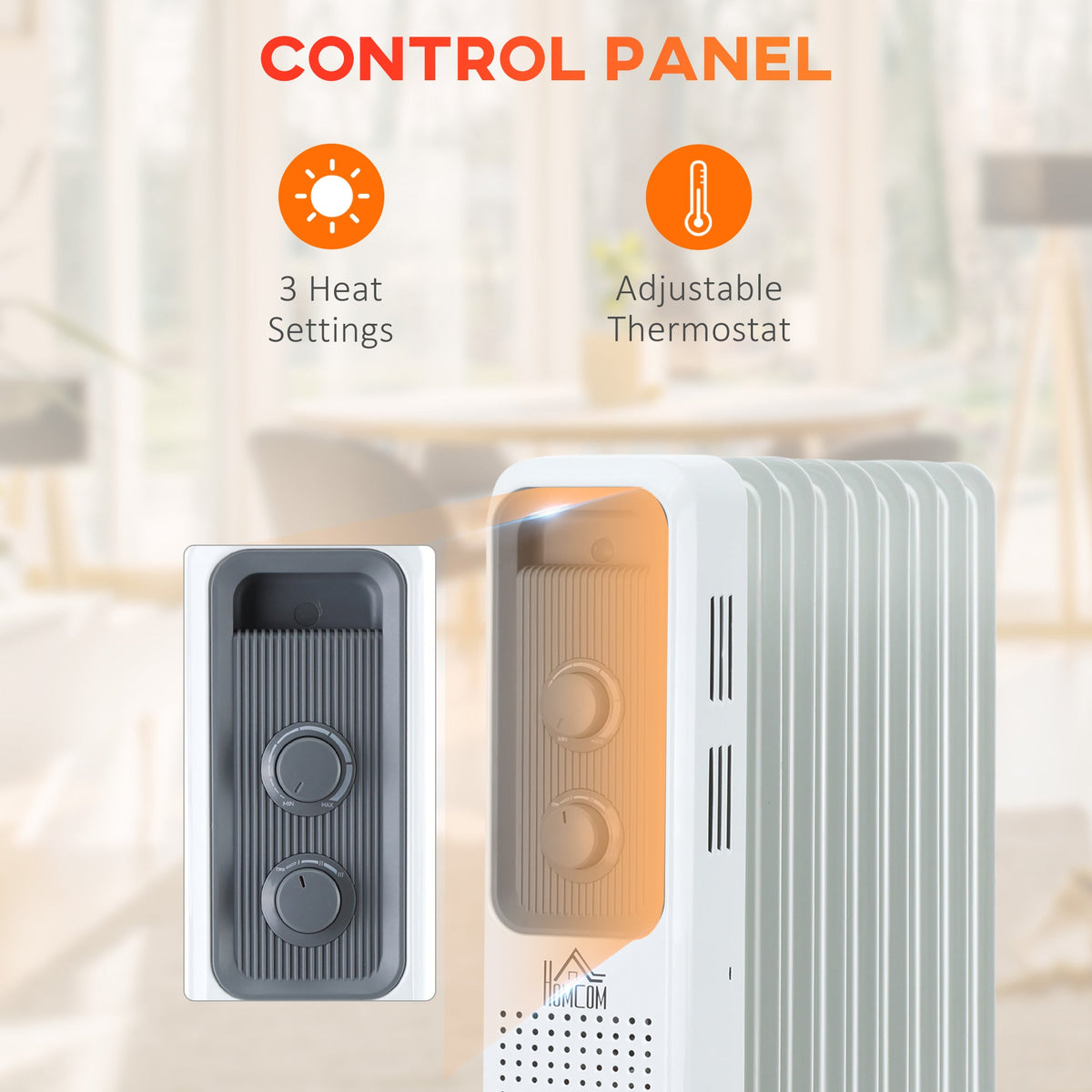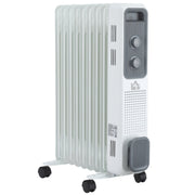 HOMCOM 2000W Oil Filled Radiator, 9 Fin, Portable Electric Heater with 3 Heat Settings, Safety Cut-Off and Wheels, White - White