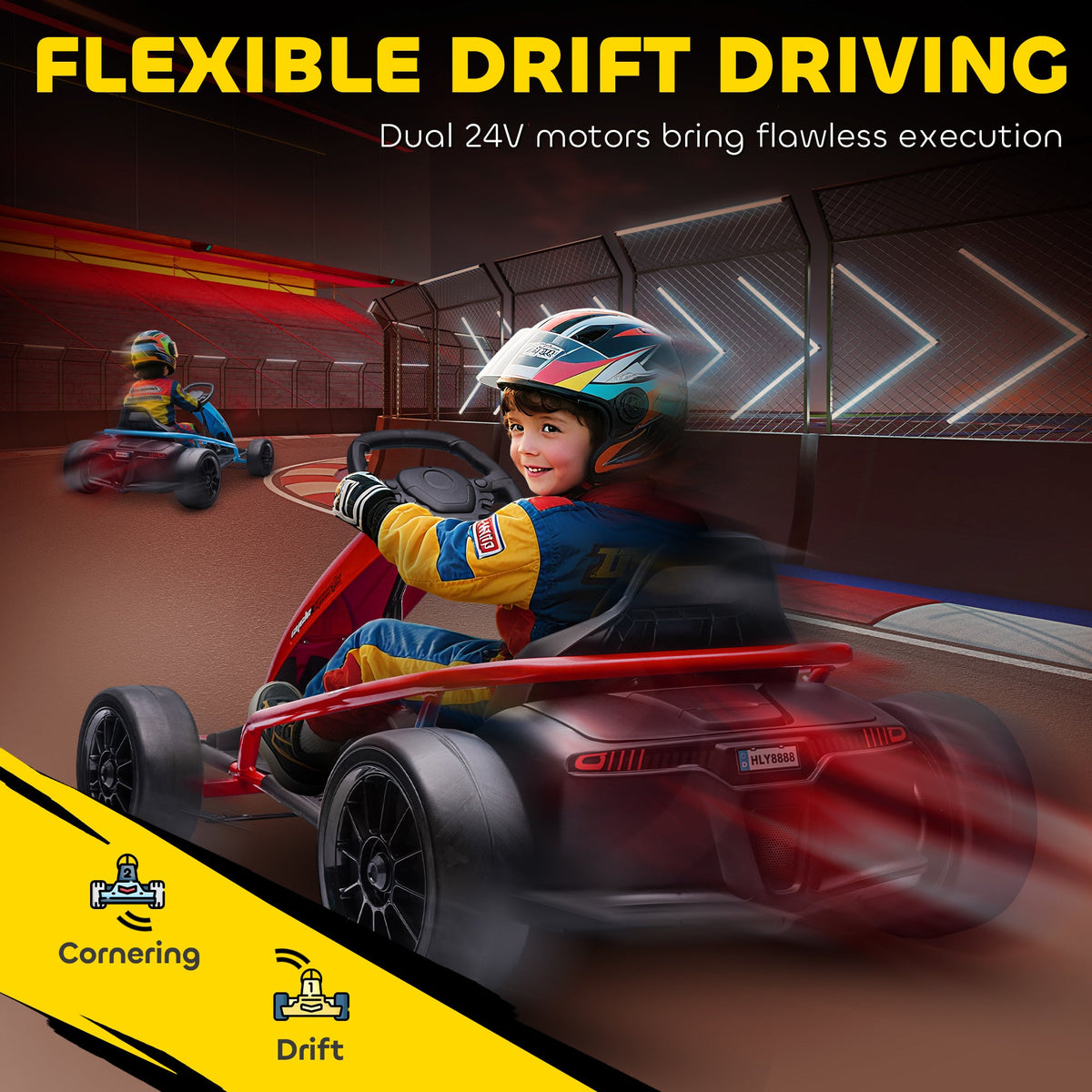 HOMCOM 24V Electric Go Kart for Kids, Drift Ride-On Racing Go Kart with 2 Speeds, for Boys Girls Aged 8-12 Years Old, Red - Red