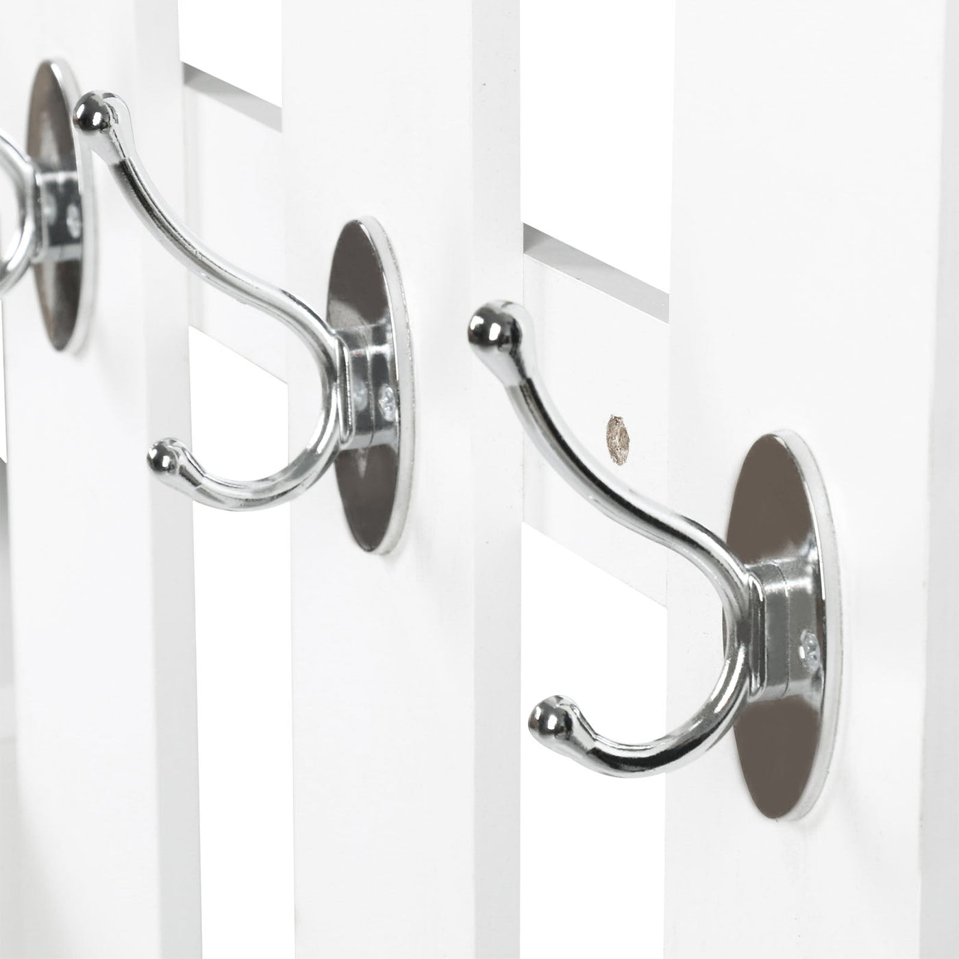 This Homcom show storage with wall hangers is a great solution by an entrance or hallway. The 3 in 1 systems offers everything you need, from a place to keep your shoes, a mirror to see your self before you leave and a wall hanger to keep your jackets and coats. Made from a particle board construction and lots of storage space, this design can live perfectly within any home and decor.
