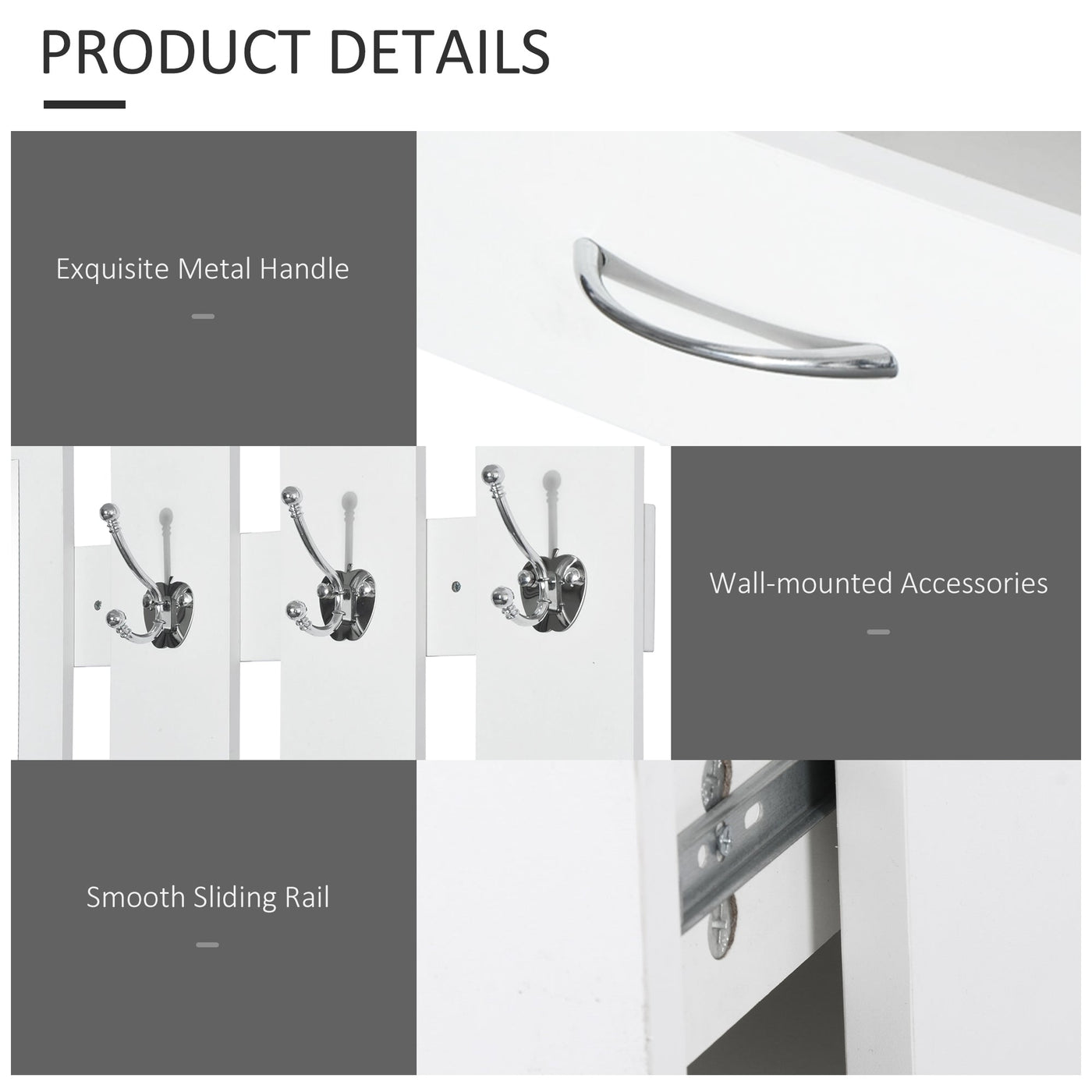 HOMCOM 2PC Shoes Storage Chest Cloths Rack Unit w/Mirror Multiple Shelves Large Storage Capacity Shoes Cabinet 6 Hooks Cloth Rack White - White