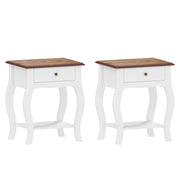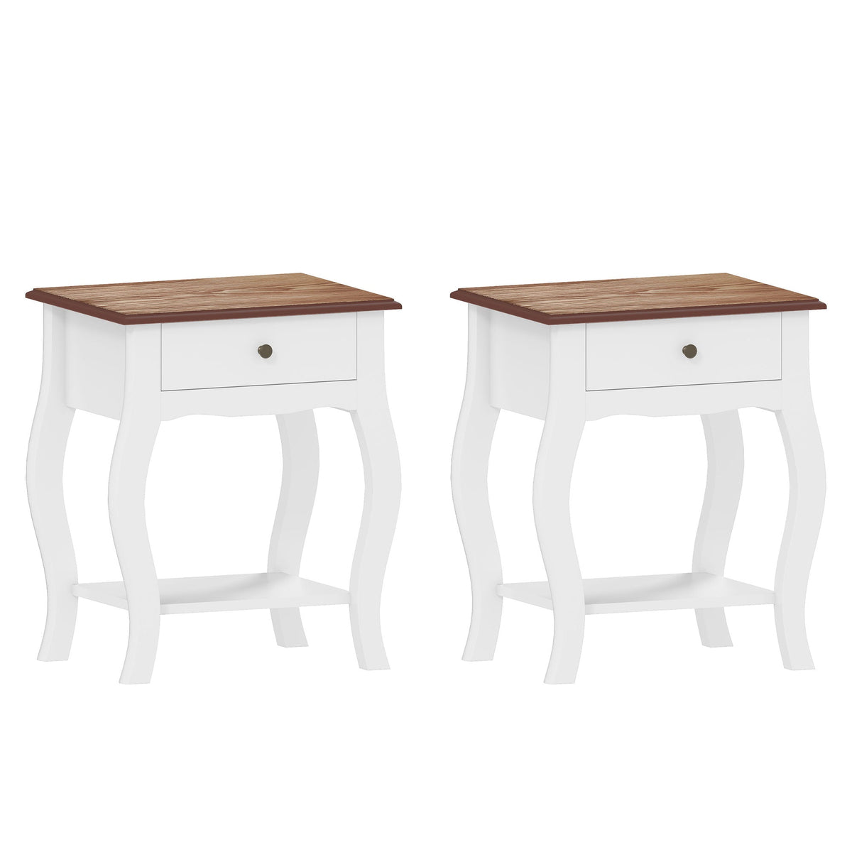 HOMCOM 2pcs Bedside Tables with Drawer, French Style Bedside Cabinets with Open Shelf for Bedroom, Living Room, White - White