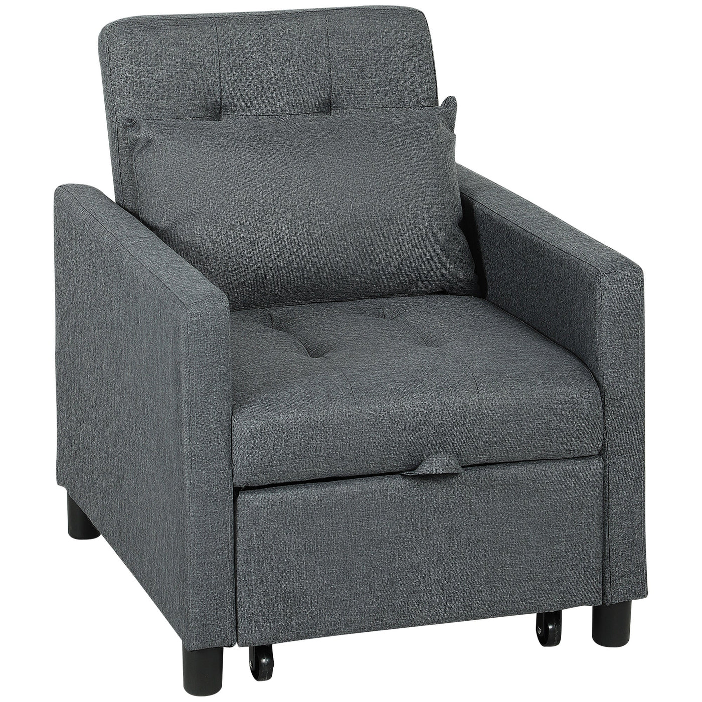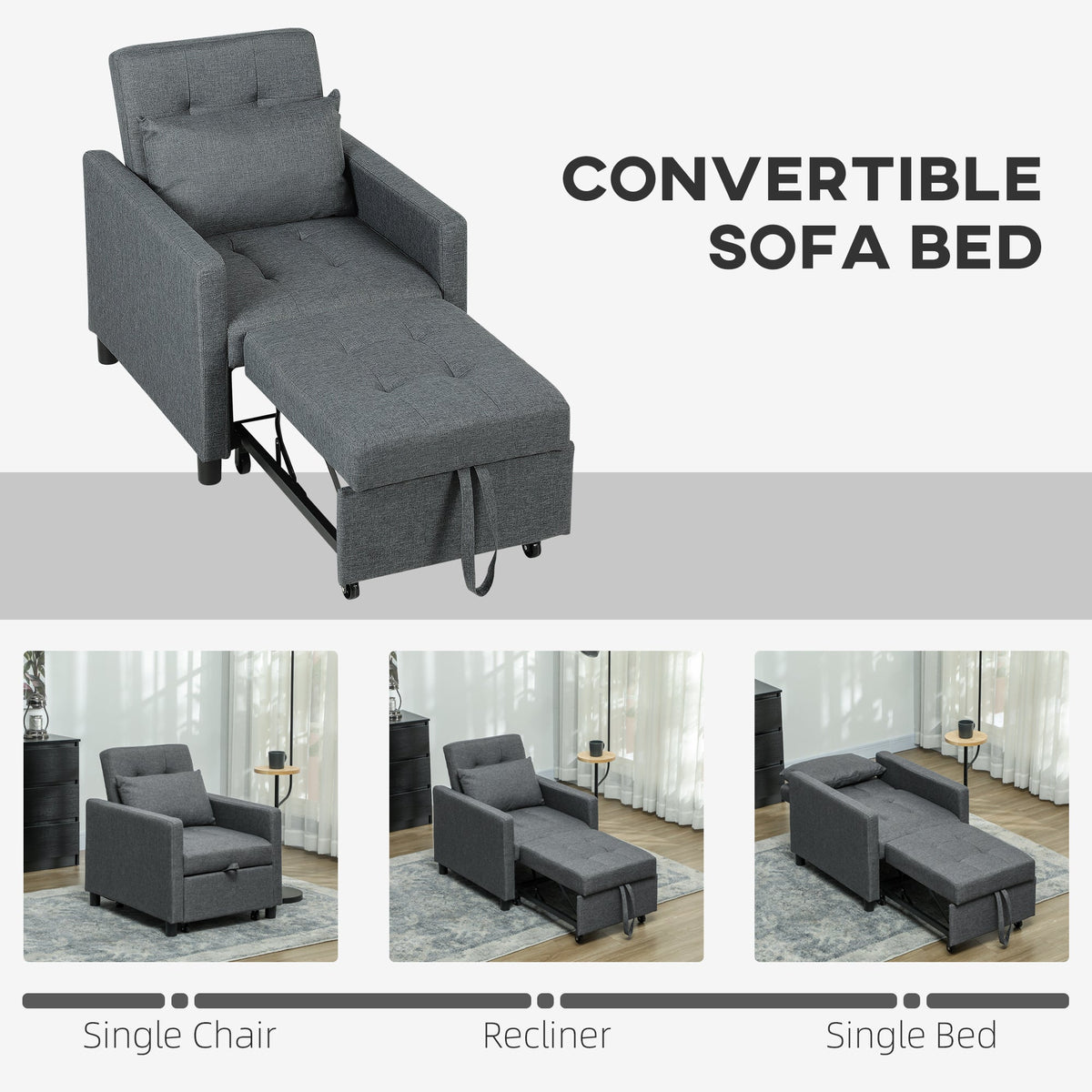 HOMCOM 3-In-1 Chair Bed, Convertible Sleeper Chair with Adjustable Backrest, Pillow and Footrest for Living Room, Dark Grey - Dark Grey