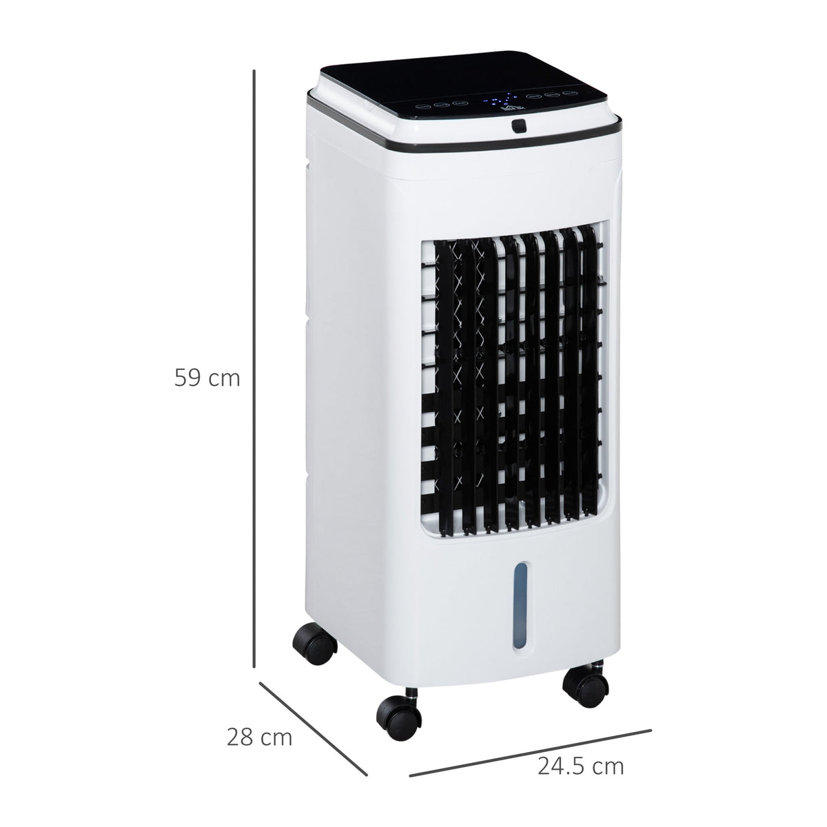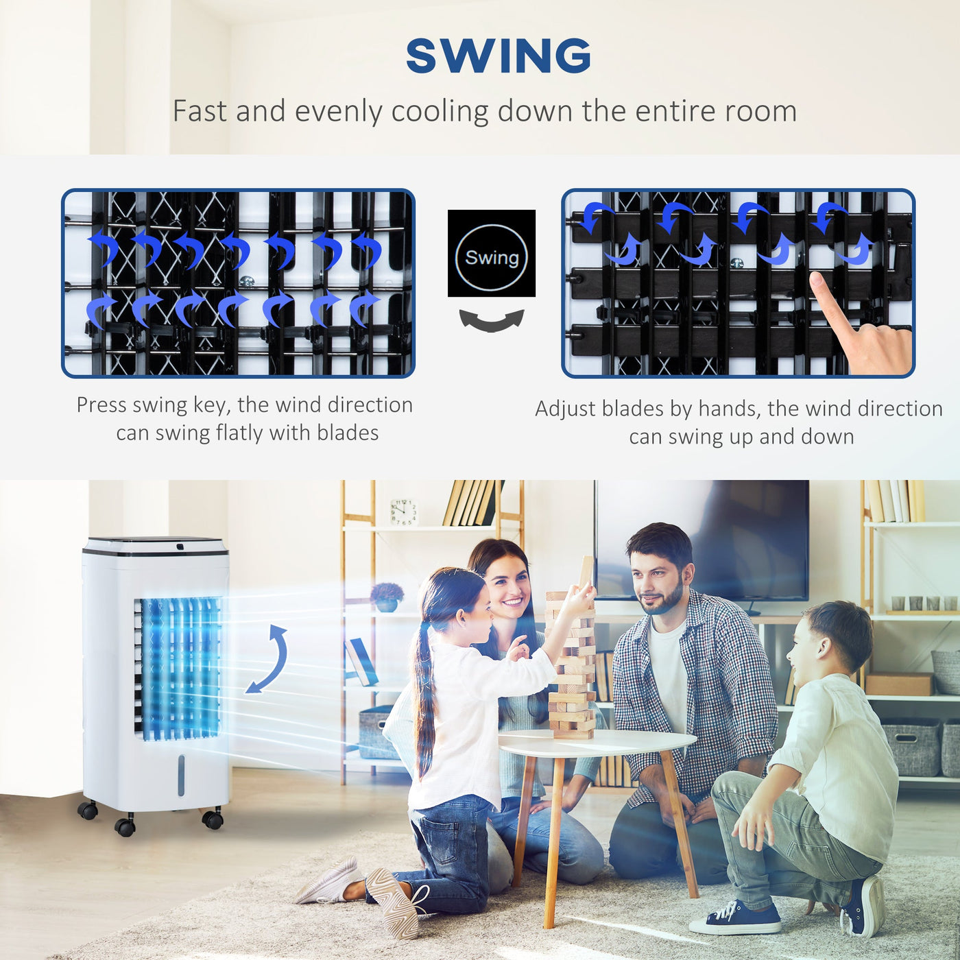 HOMCOM 3-in-1 Evaporative Air Cooler with 4L Water Tank, Portable Fan Cooler with Automatic Oscillation, Timer, Remote, White - White