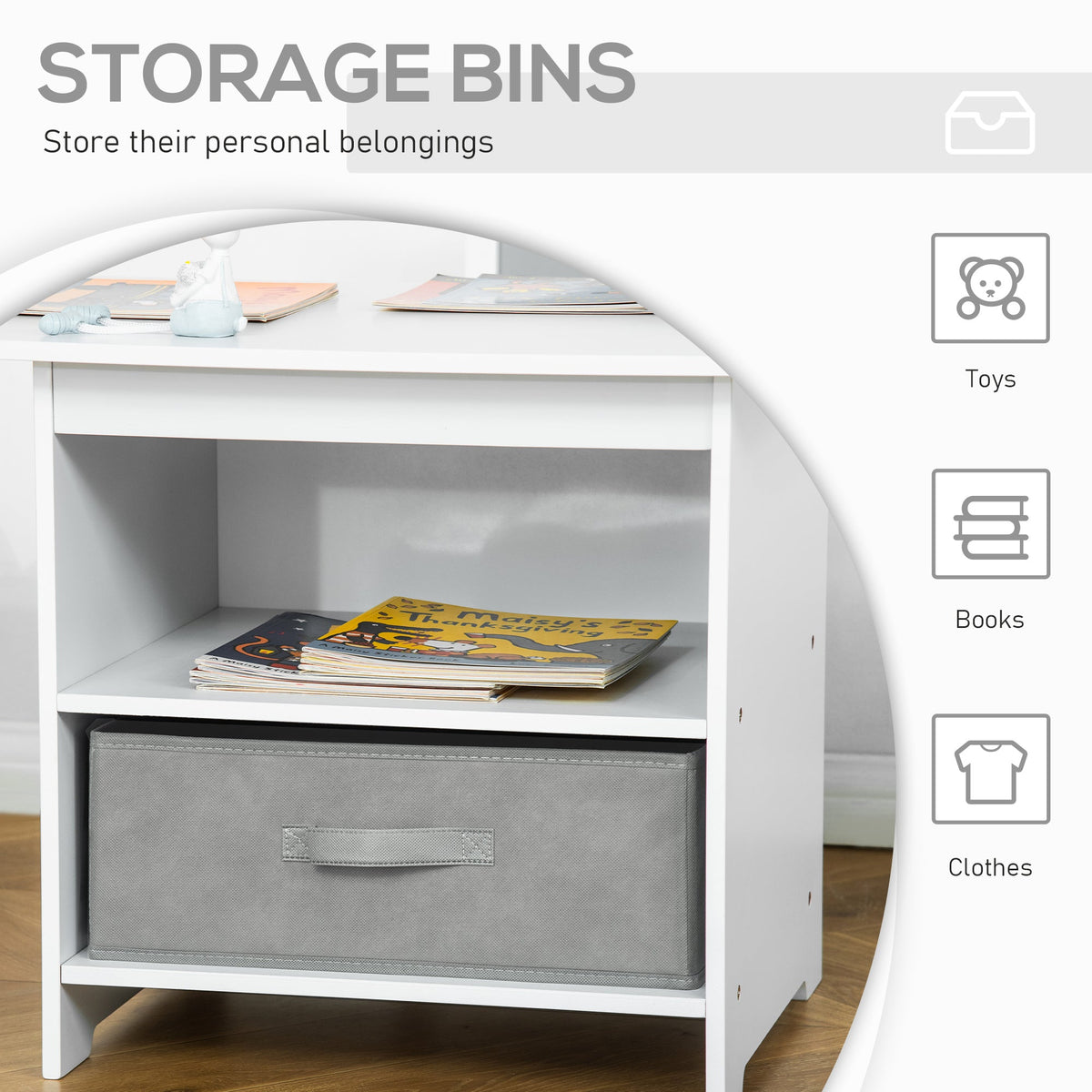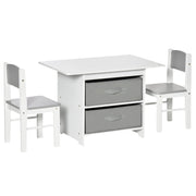 HOMCOM 3 Pcs Kids Table & Chairs Set Mini Seating Furniture Home Playroom Bedroom Dining Room w/ Storage Drawers Safe Corners for 2-4 Years old White - White