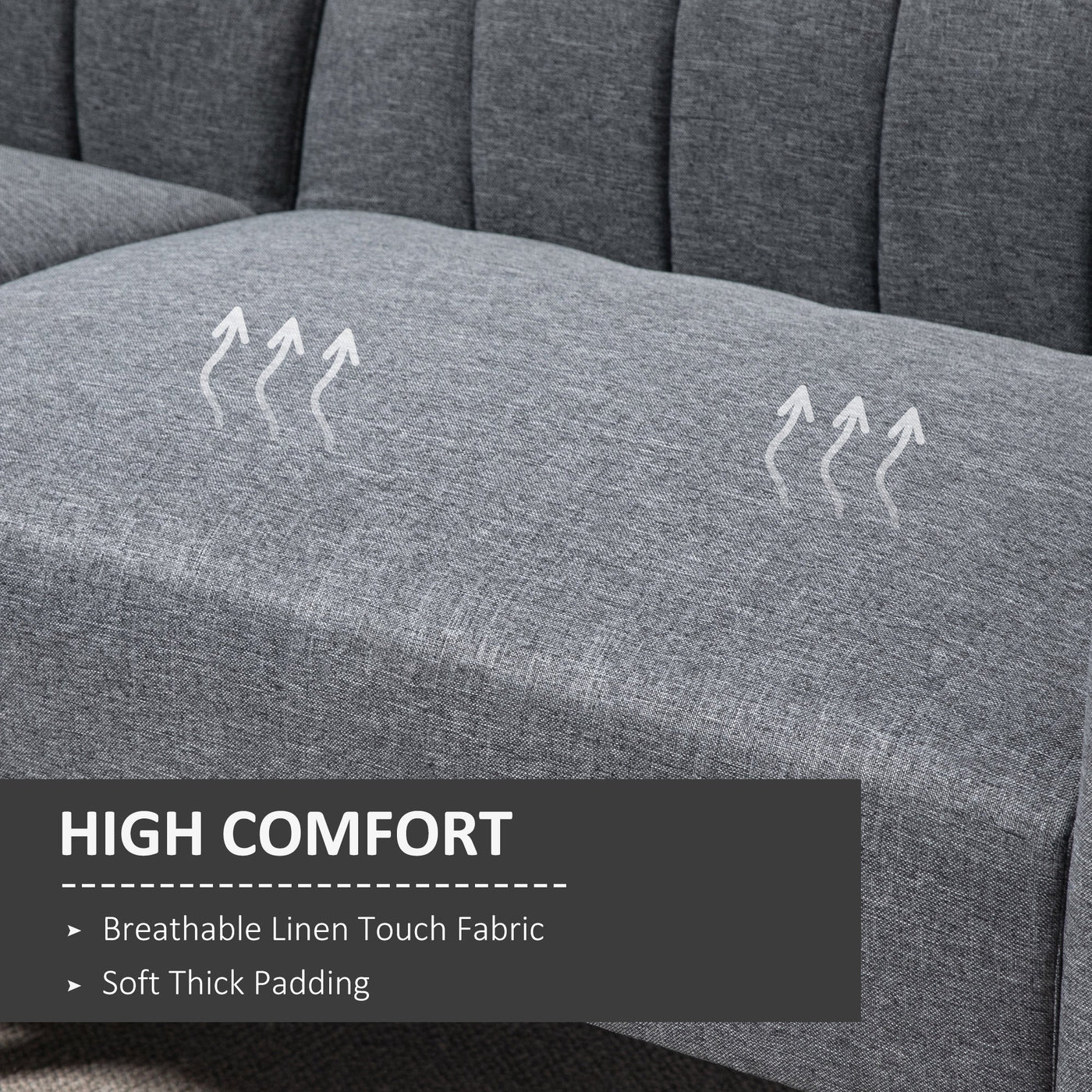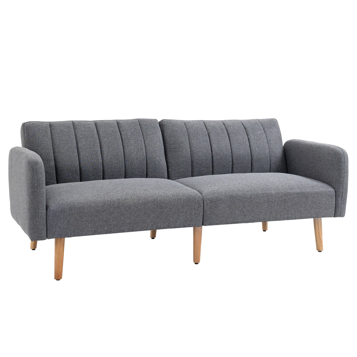 HOMCOM 3 Seater Sofa Bed, Convertible Linen Fabric Sofa Couch, Click Clack Sofabed with Adjustable Split Backrest for Living Room, Bedroom, Guest Room, Grey - Grey