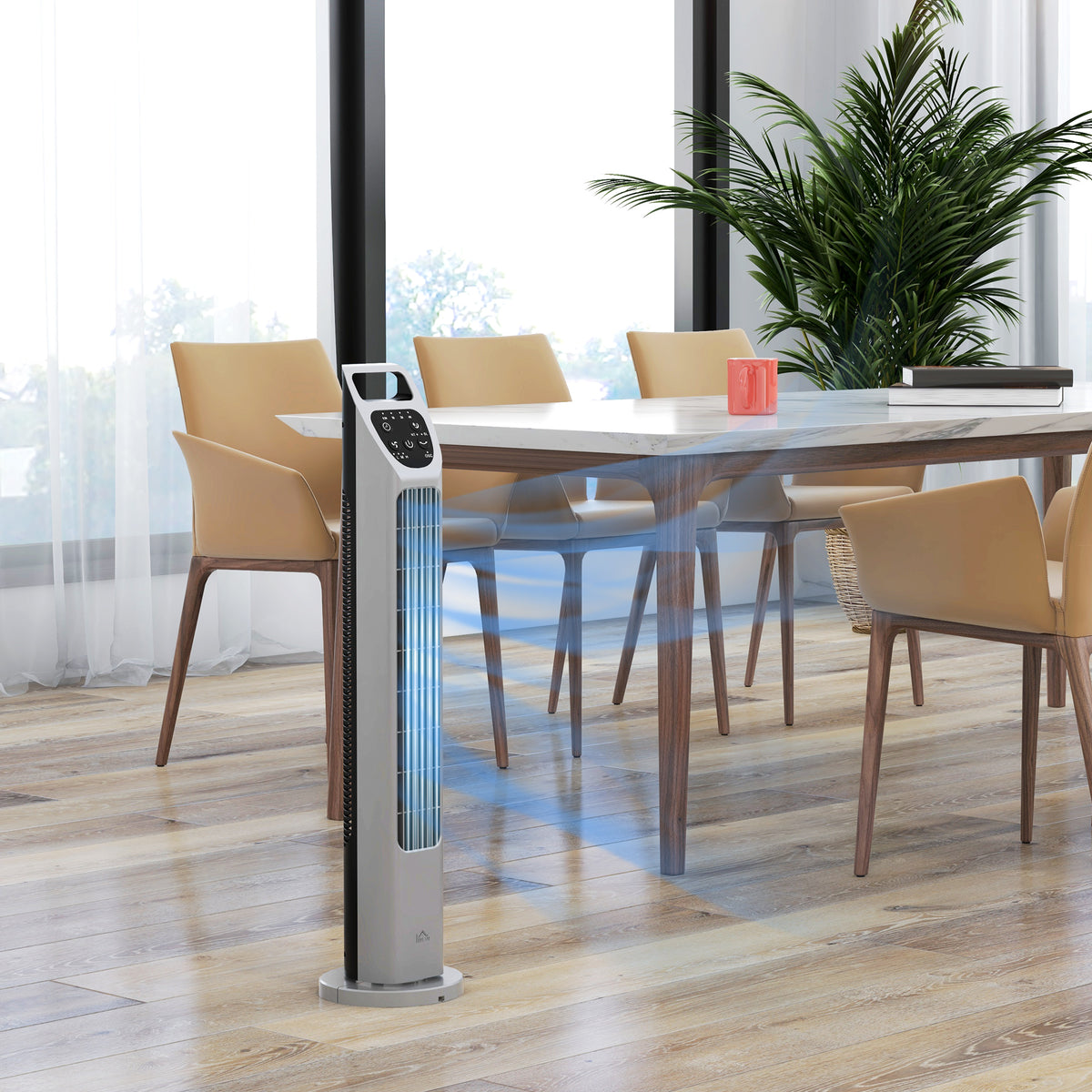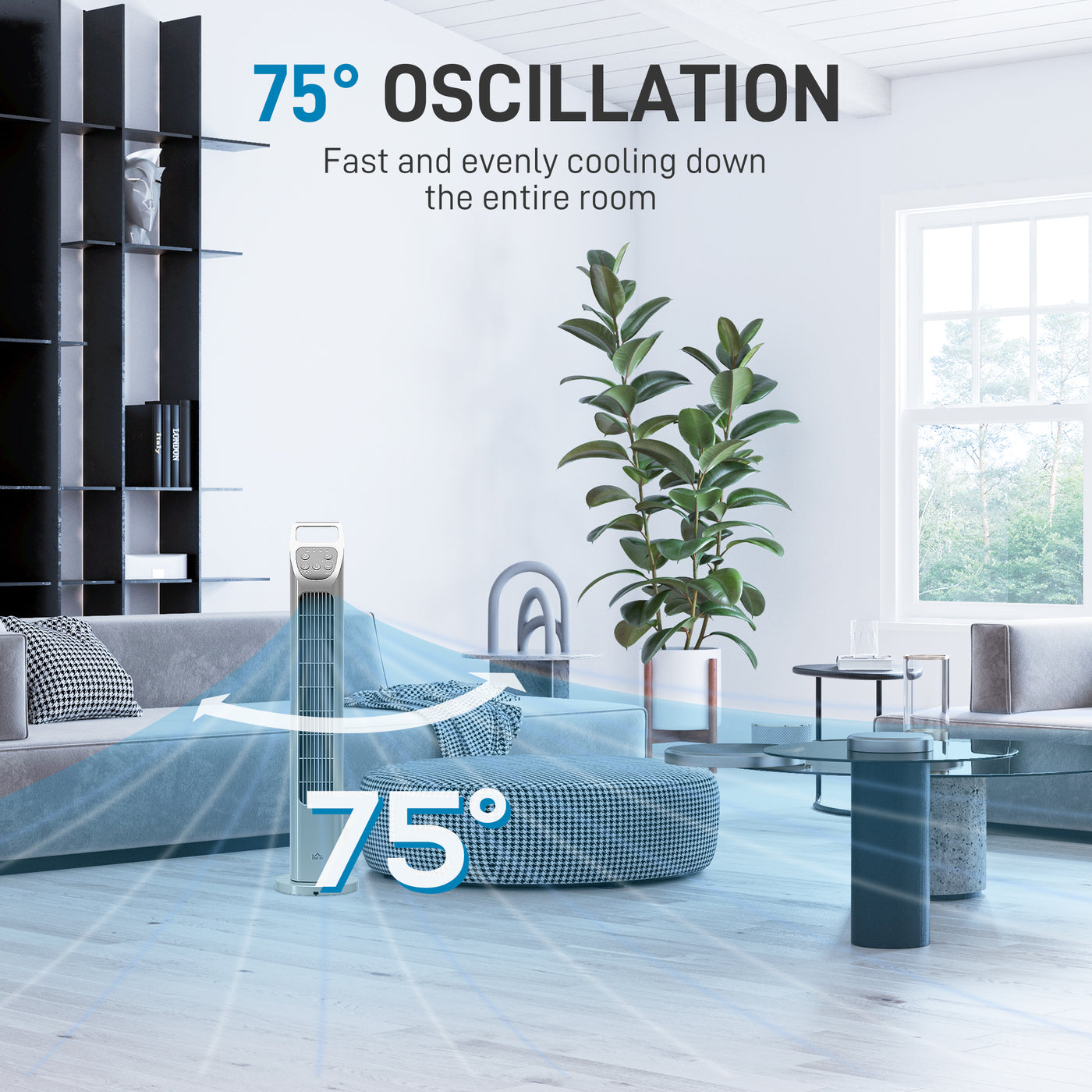 HOMCOM 31" Oscillating Tower Fan with Remote Control, 4H Timer, 3 Speed 3 Modes, Quiet Electric Floor Standing Fan for Home Bedroom Office, Silver - Silver