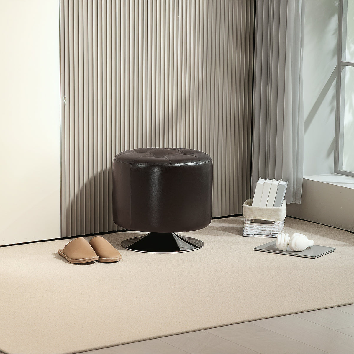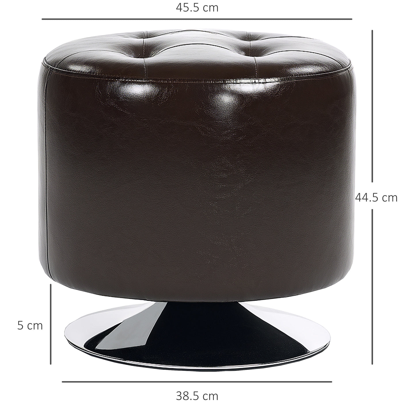 HOMCOM 360° Swivel Foot Stool Round PU Footstool with Thick Sponge Padding and Solid Steel Base, Brown - Brown