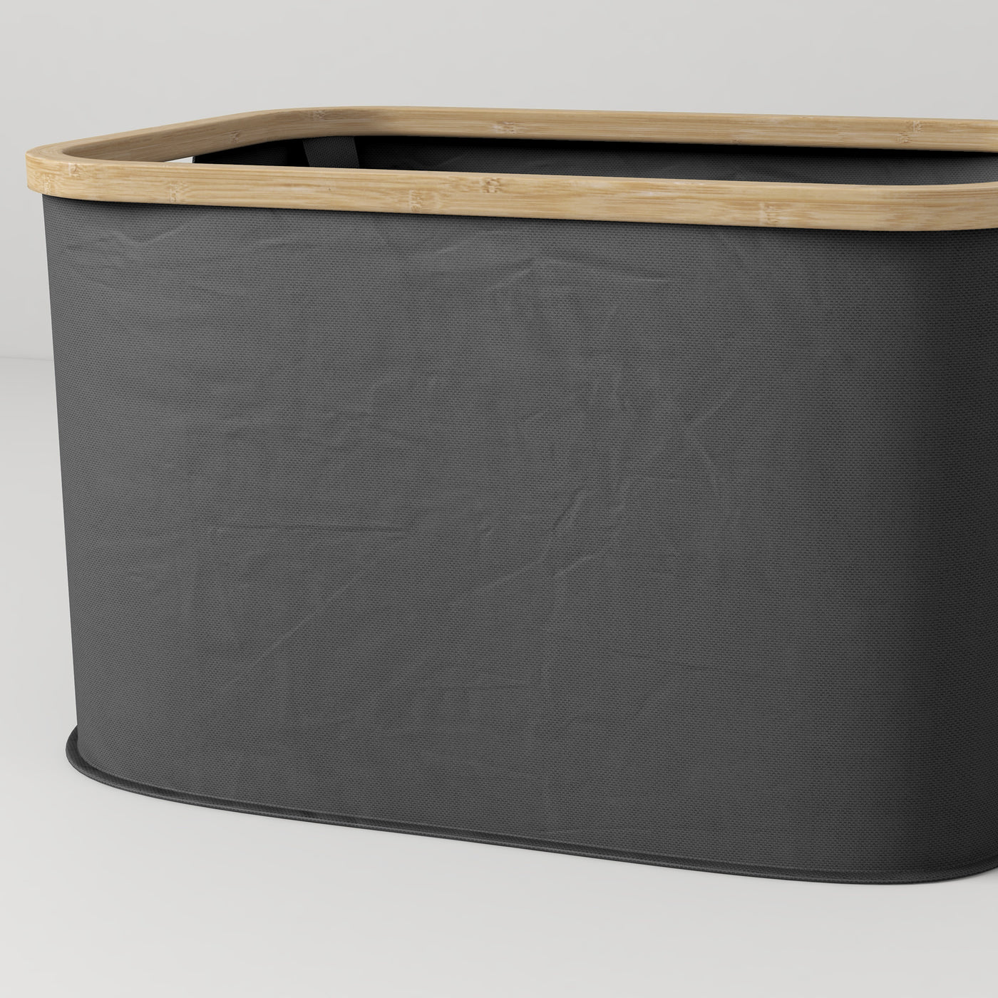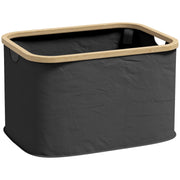 HOMCOM 36L Foldable Laundry Basket, with Bamboo Top - Black - Black