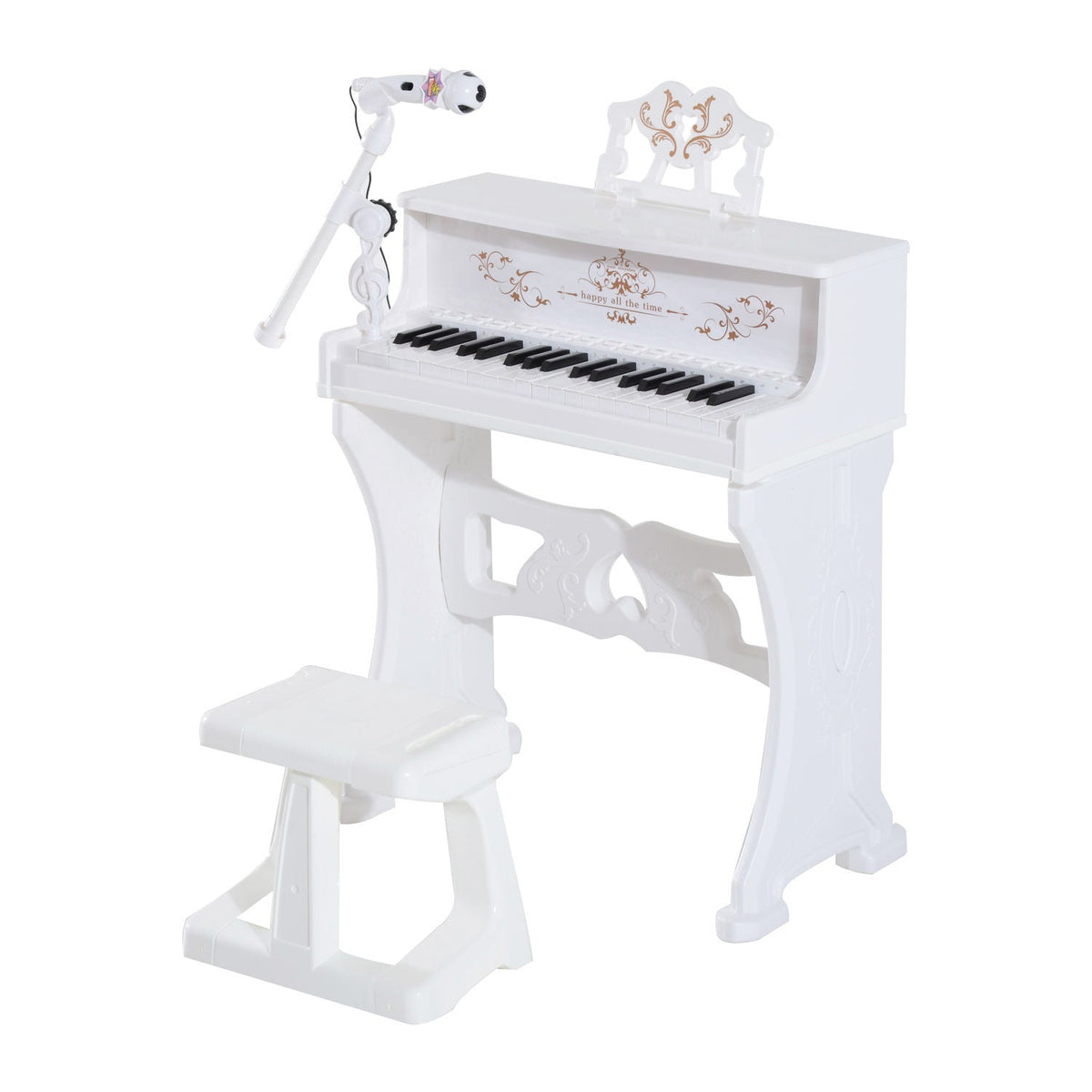 HOMCOM 37 Keys Kids Piano Mini Electronic Keyboard Light Kids Musical Instrument Educational Game Children Grand Piano Toy Set w/Stool & Microphone & Music Stand (White) - White