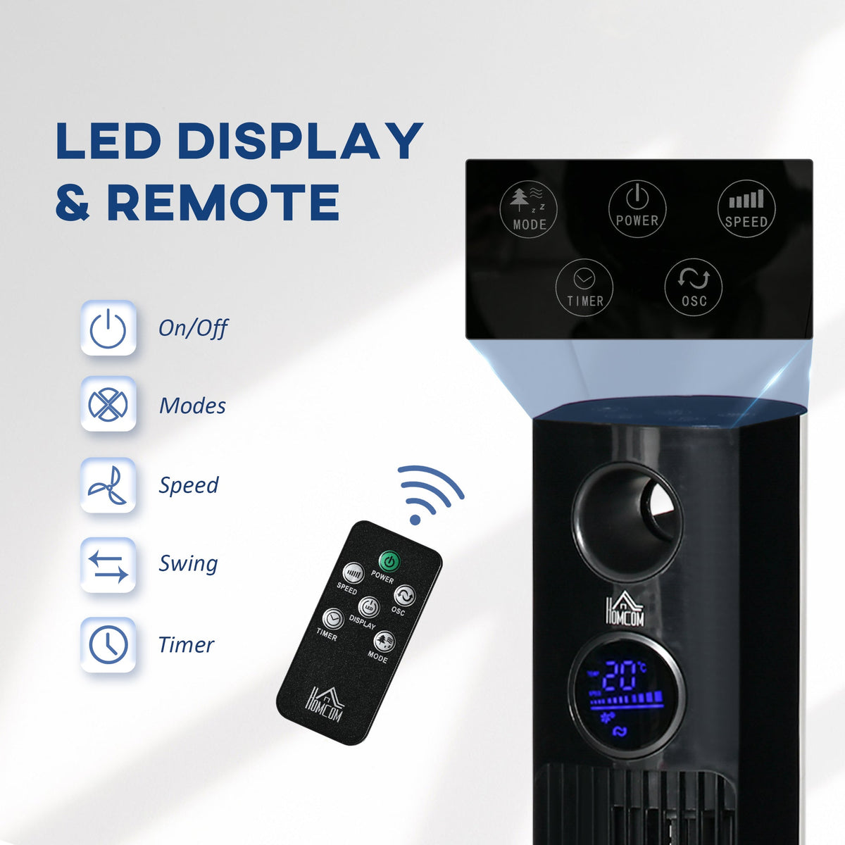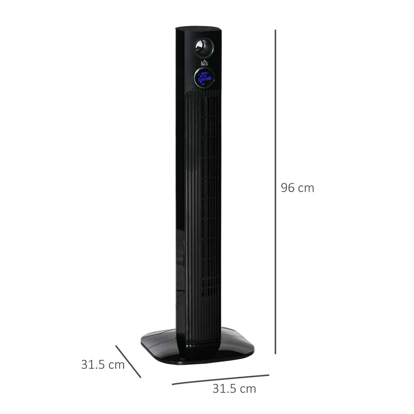 HOMCOM 38" Freestanding Tower Fan Cooling with Aroma Function, Oscillating, 12h Timer, LED Sensor Panel, Remote Controller, 3 Modes, for Bedroom, Black - Black