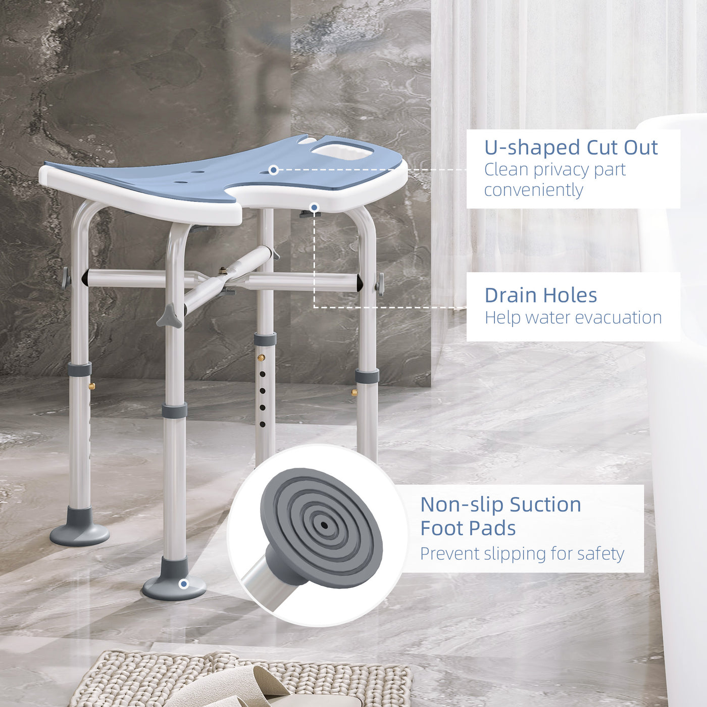 HOMCOM 39-51.5cm 'U' Seat Padded Shower Stool - Light Blue - Light Blue