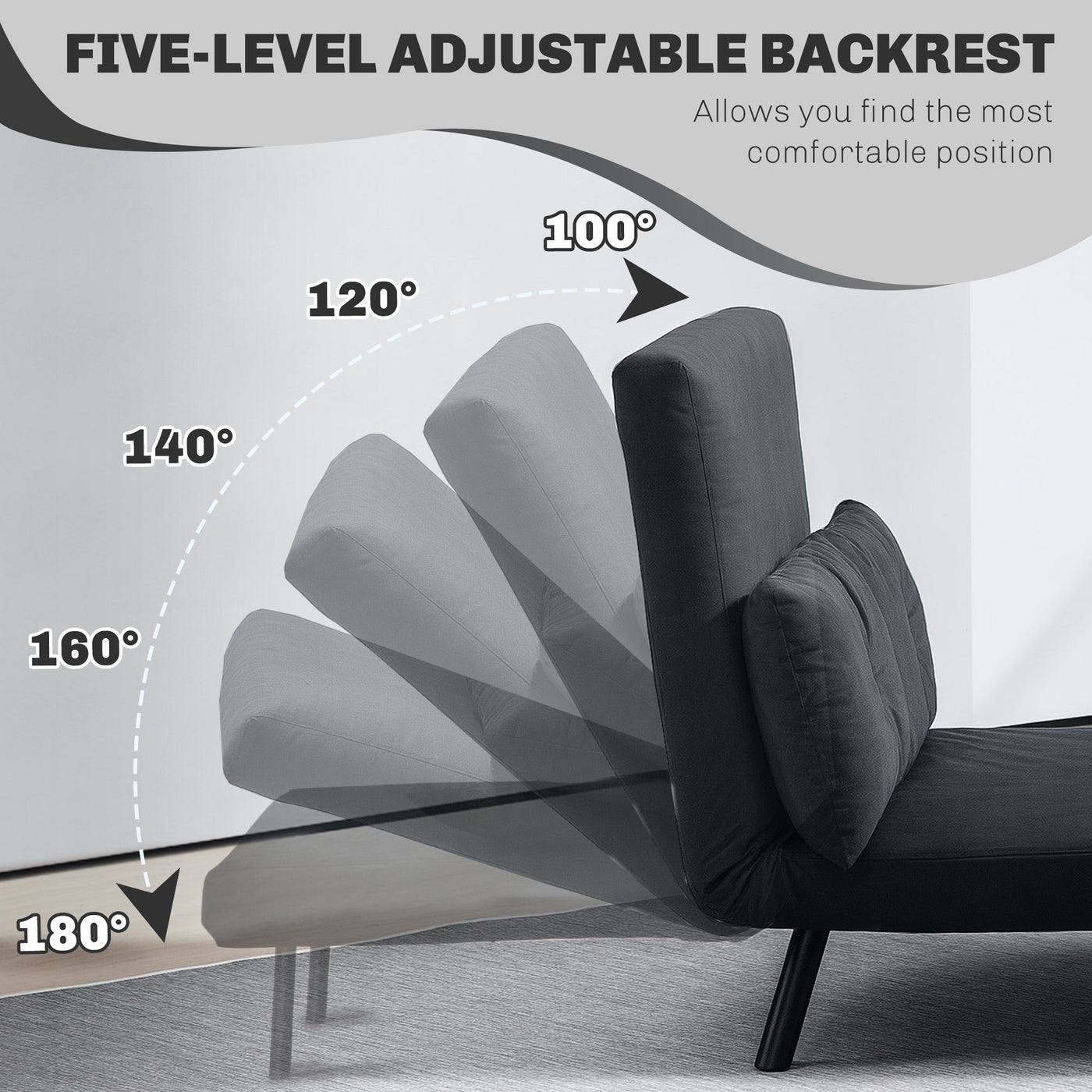 HOMCOM 4-in-1 Velvet-Feel Double Sofa Bed, with Pillows - Black - Black