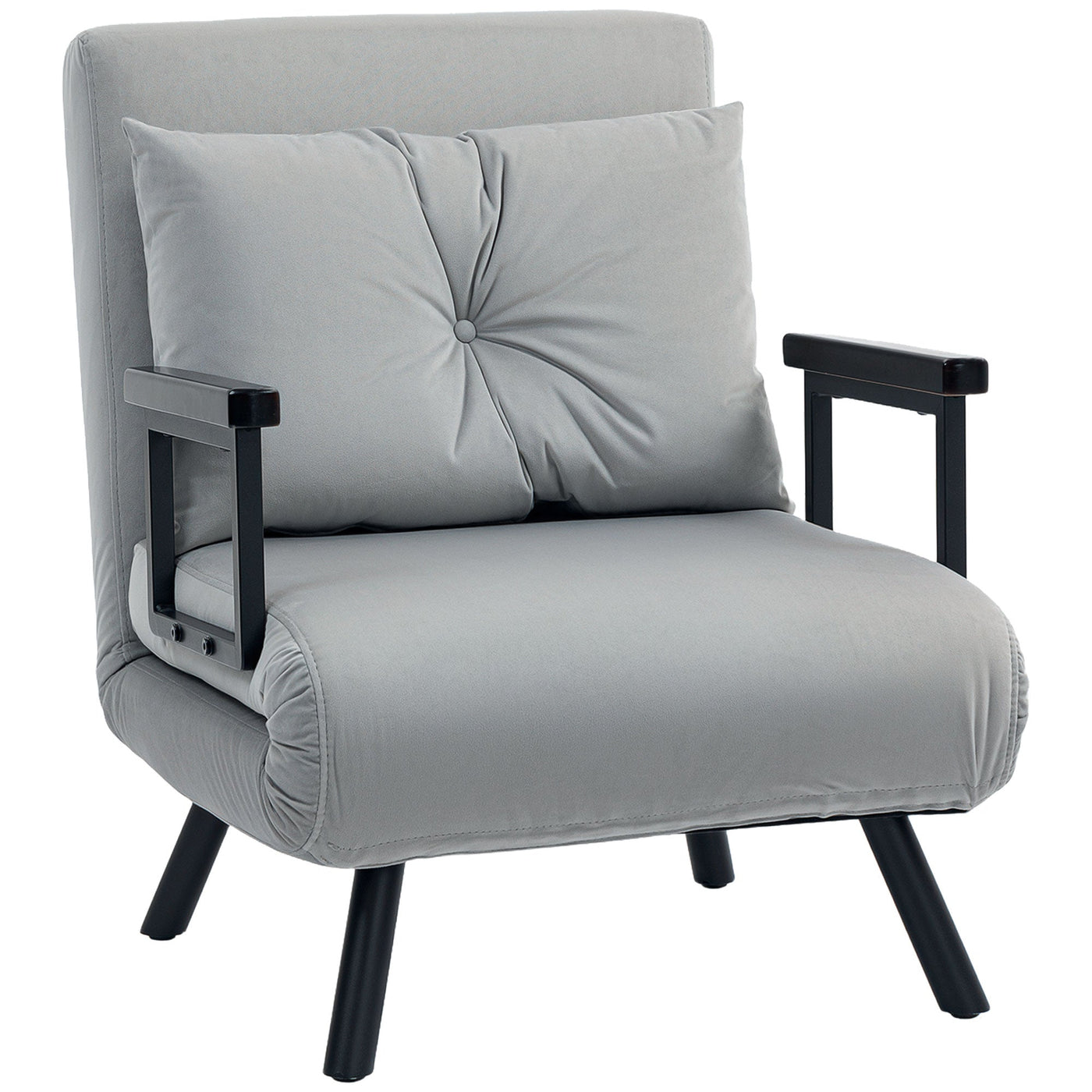 HOMCOM 4-in-1 Velvet-Feel Single Chair Bed, with Pillow - Light Grey - Light Grey