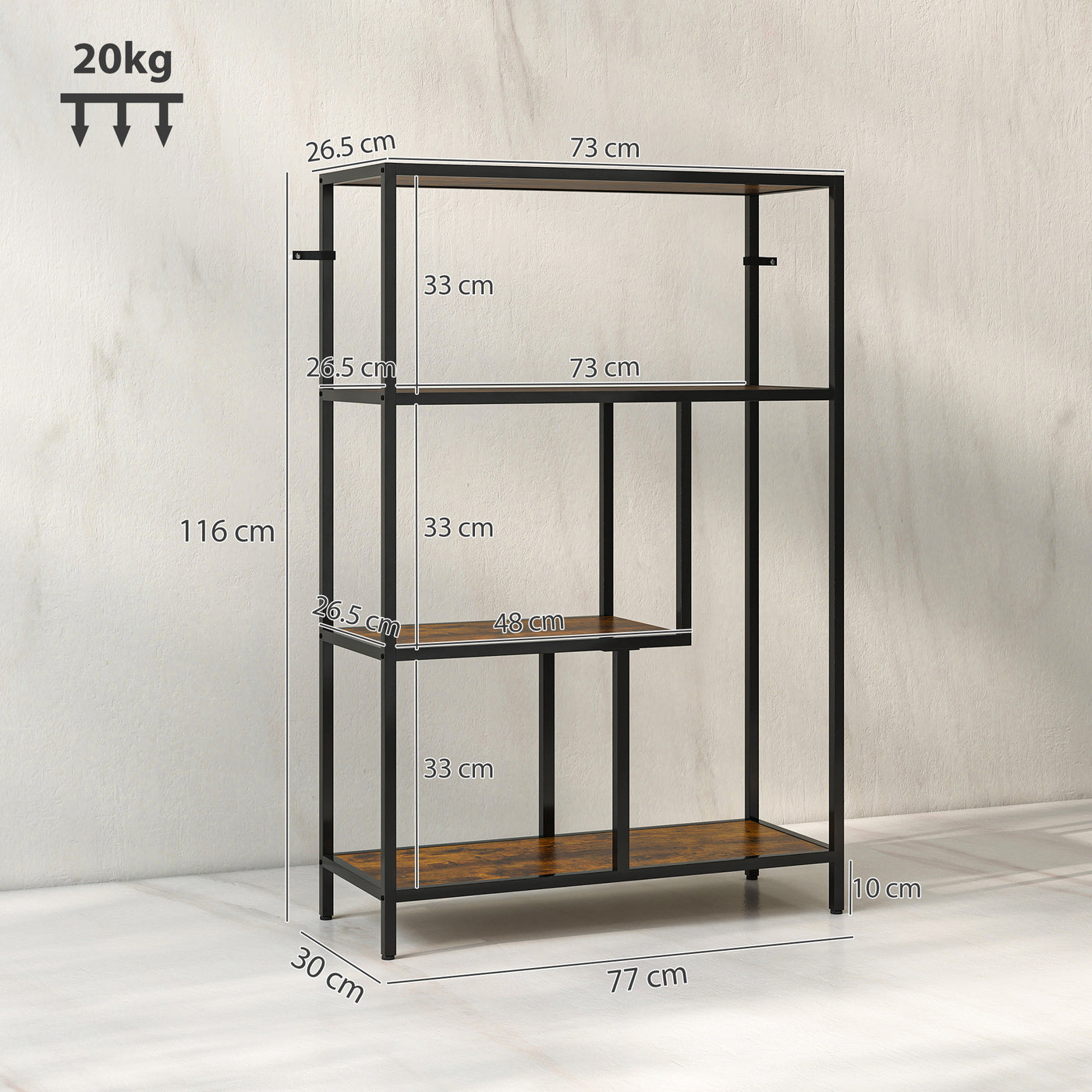 HOMCOM 4-Tier Bookshelf with Open Shelves - Rustic Brown - Rustic Brown