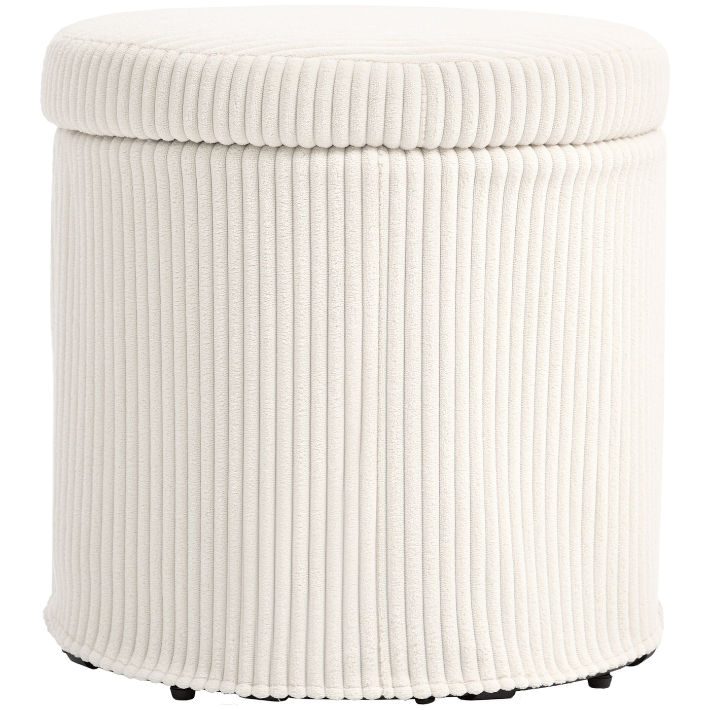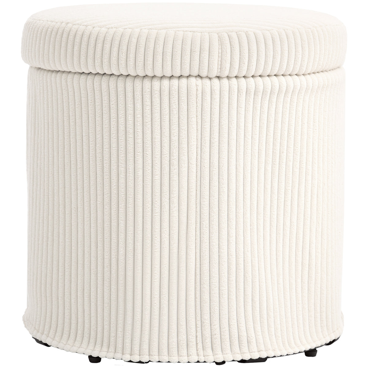 HOMCOM 40cm Round Storage Ottoman, Corduroy Footstool with Removable Lid and Legs, Vanity Stool for Living Room, Bedroom, Beige - Beige