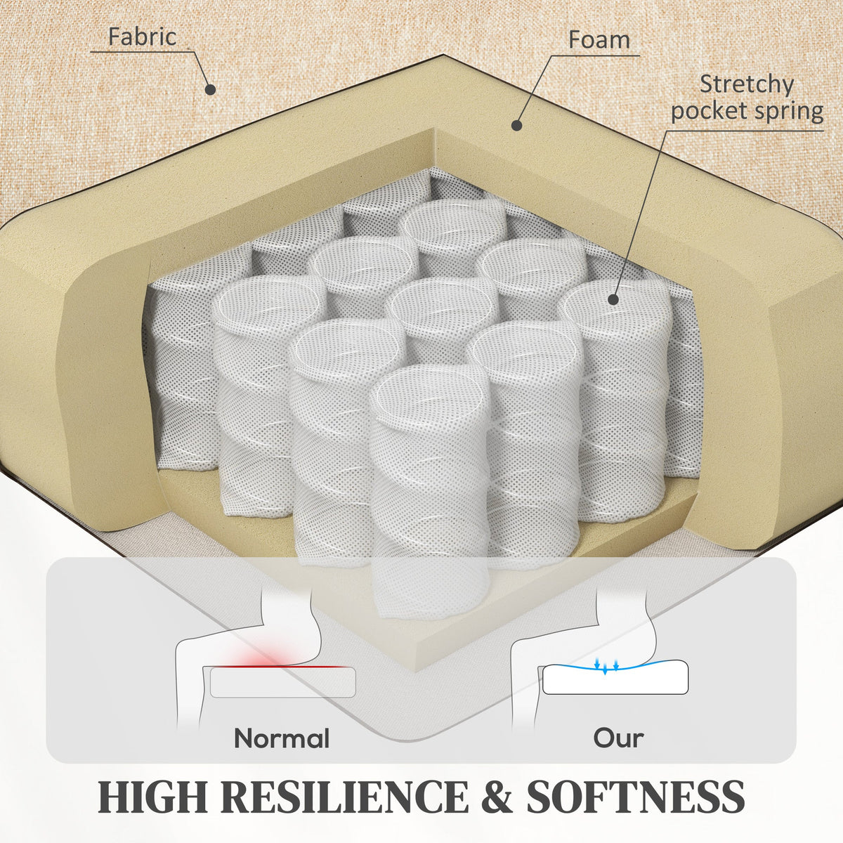 - Pocket spring filling and high-density foam for lots of comfort. Smooth linen-look upholstery