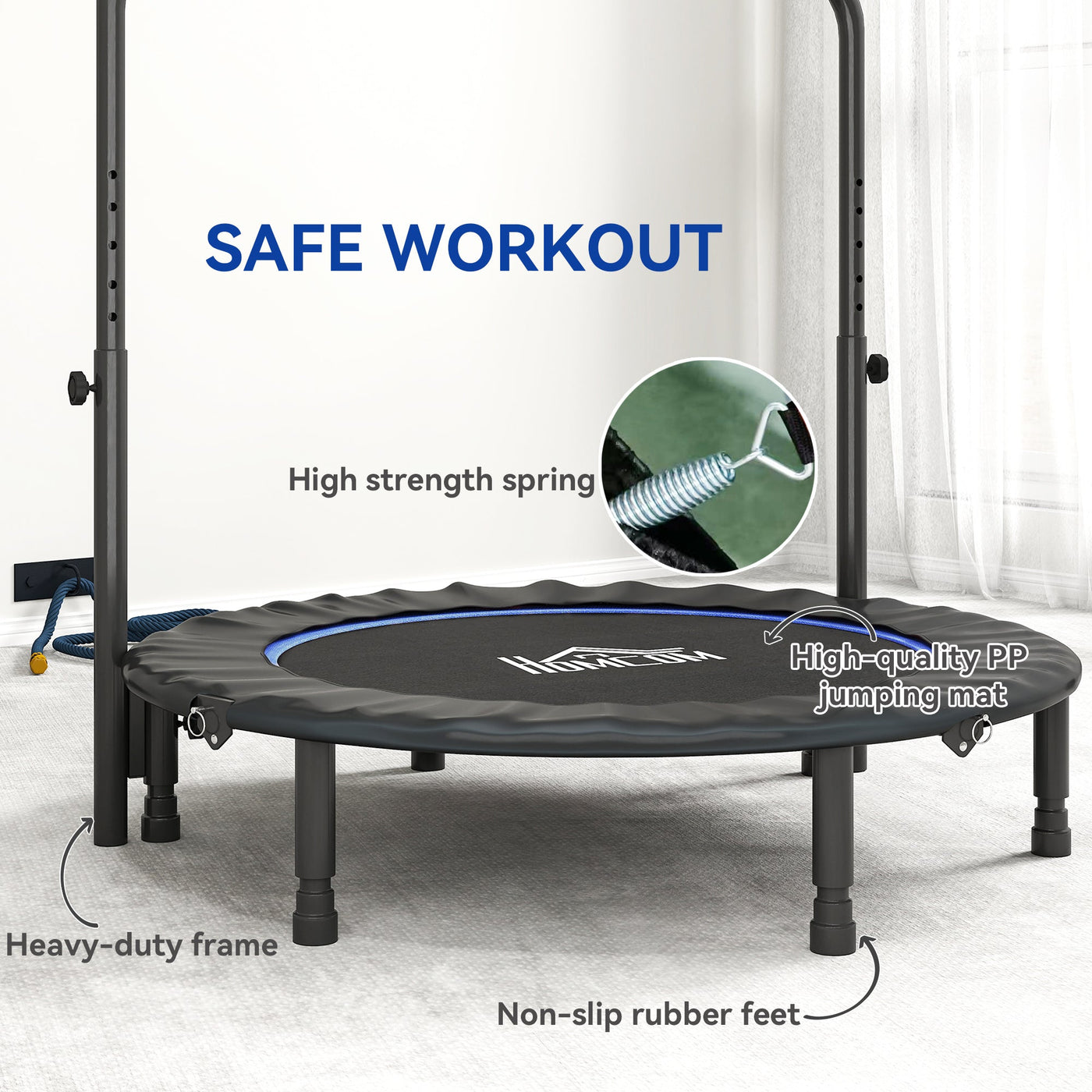 HOMCOM 45" Foldable Mini Fitness Trampoline, with Adjustable Foam Handle, Blue