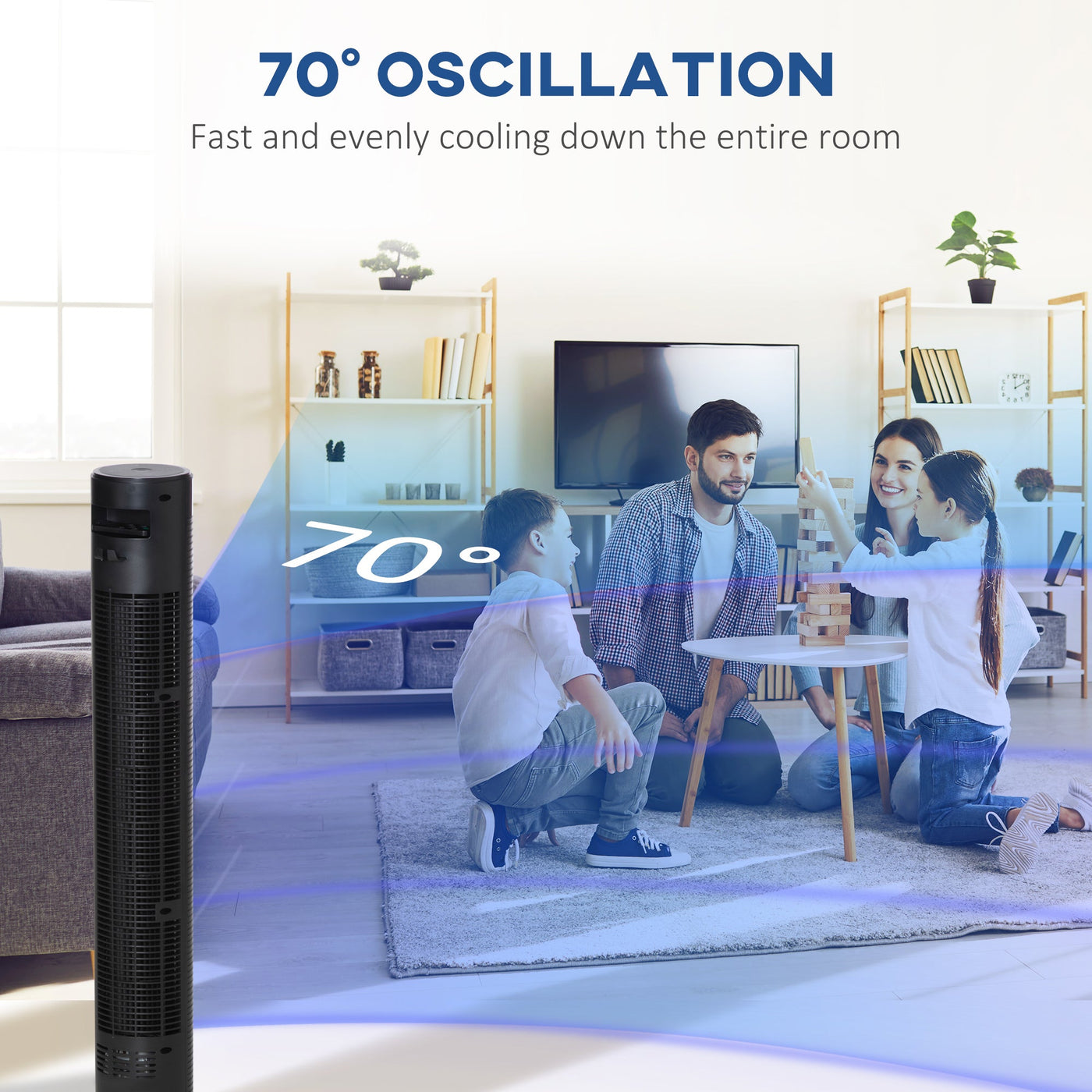HOMCOM 46" Oscillating Tower Fan with Remote Control, 12H Timer, 3 Speed, 4 Modes, Quiet Cooling Fans, Electric Floor Standing Fan for Home Bedroom Office, Black - Black