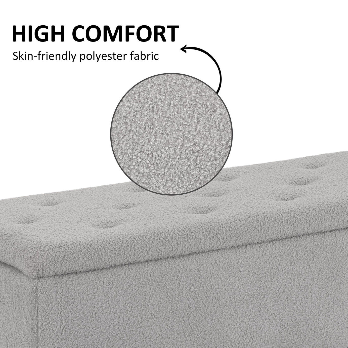 HOMCOM 47L Storage Ottoman, End of Bed Bench with Wooden Legs, Fabric Footstool for Living Room, Bedroom, 95 x 38 x 45cm, Grey - Grey