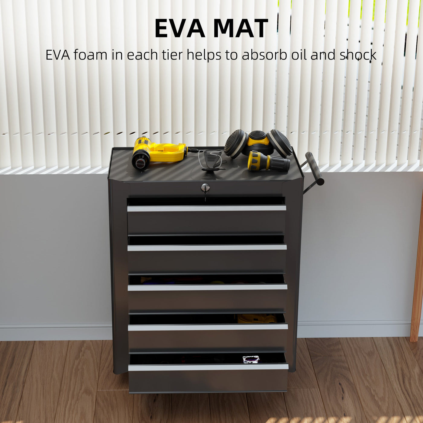 HOMCOM 5-Drawer Tool Chest with Wheels, Steel Lockable Tool Storage Cabinet with Handle, 2 Keys for Garage, Workshop, Black - Black