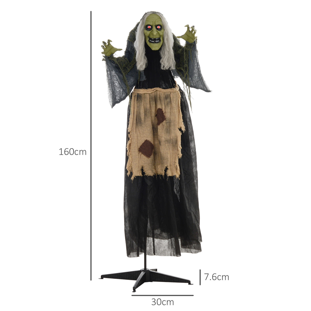 Fun jump scares come at unexpected times with this HOMCOM animated halloween prop. This moving piece is activated by touch or sound - so it will catch people as they walk by, for that real halloween spirit! The hunchback witch design has a moving head and shoulders, with red light eyes and a scary sound; controlled by 3 x AA batteries, so you can place this piece wherever you see best.