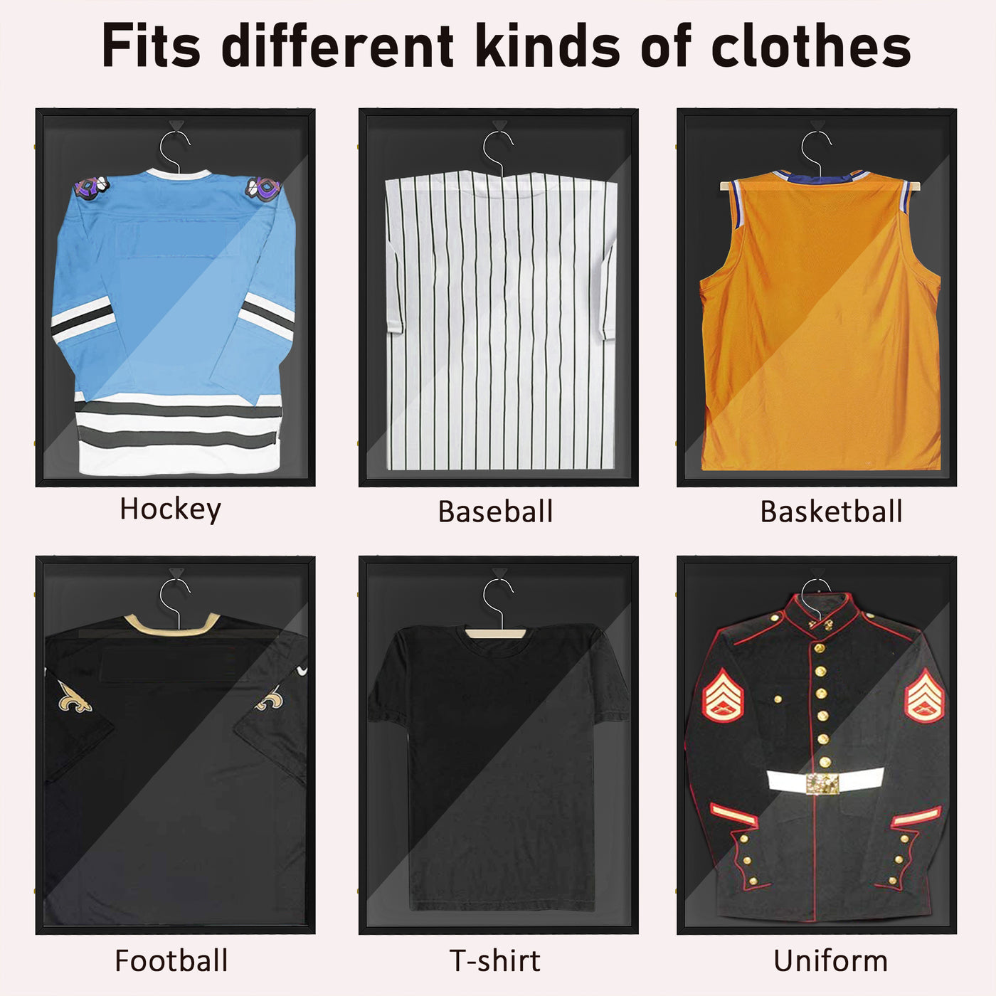 Display your favourite sports memorabilia with this HOMCOM shirt frame. The 60 x 80cm size means plenty of room, so it can show off small, medium or large pieces, with the inner hook and hanger holding the garment securely in place. An aluminium frame for a tough outer, with the acrylic front panel creating a safe shield for the inside contents.