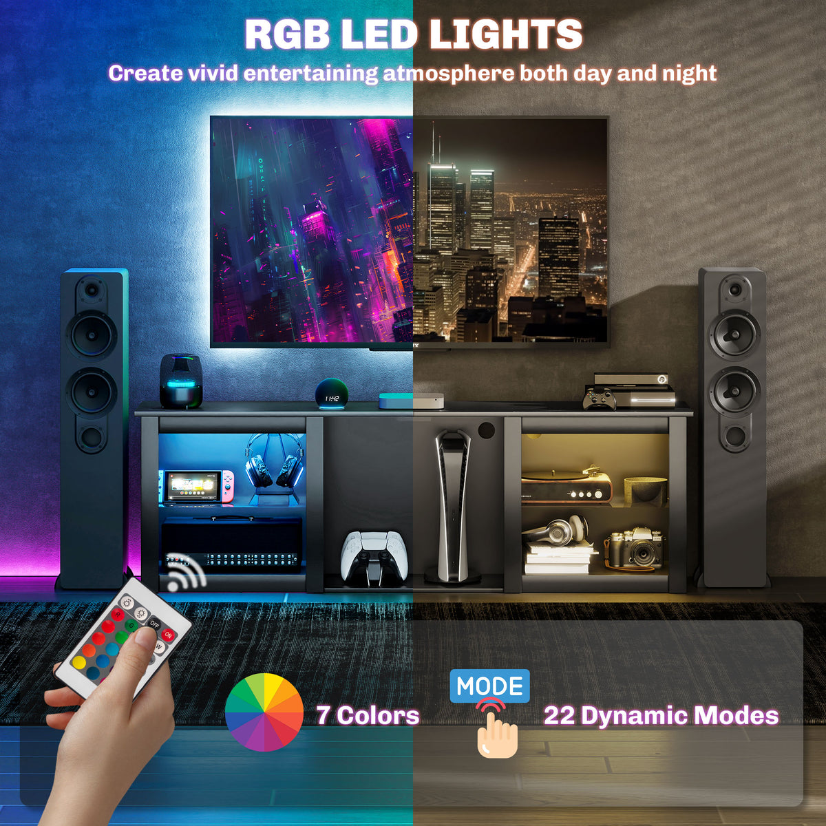 HOMCOM 65" TV Stand, with LED Lights and Storage - Black - Black