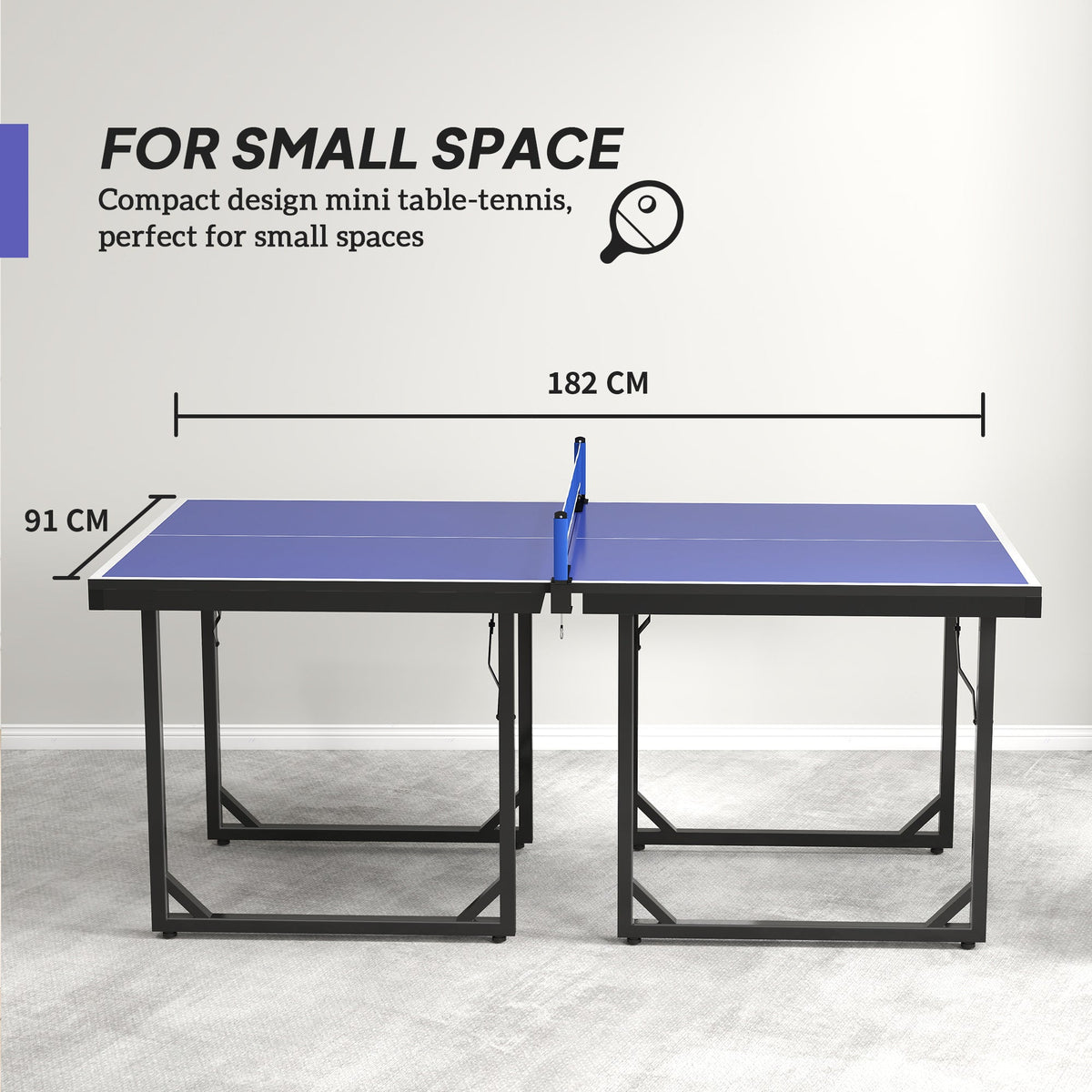 HOMCOM 6ft Table Tennis Table, Ping Pong Table with Net, Foldable and Portable Ping Pong Set for Indoor Outdoor Use, Easy Assemble, Midsize, Blue - Blue