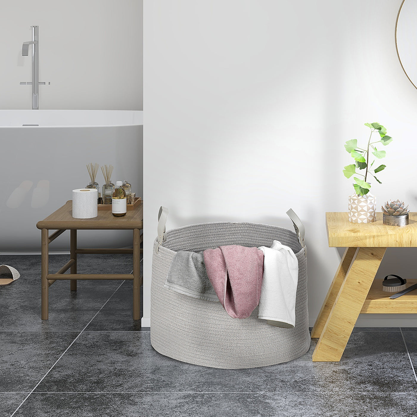 The soft and natural approach to dirty clothes storage, this HOMCOM laundry basket is a welcome addition to any space. It's made from cotton in a rope finish: a soft, chemical-free piece which gently holds your clothes. The 88L capacity is large so it holds plenty of clothes - great for individual and shared use. To pick up: just use the two top handles, and to wash: simply pop this wash bin into your washing machine on a 40° cycle.